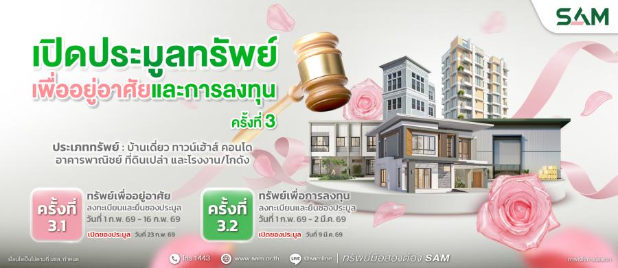 SAM ขนทรัพย์ NPA ทำเลทองทั่วไทย เปิดประมูลกว่า 96 ล้านบาท จับมือ 6 พันธมิตรธนาคารชั้นนำมอบข้อเสนอสินเชื่อสุดพิเศษ
