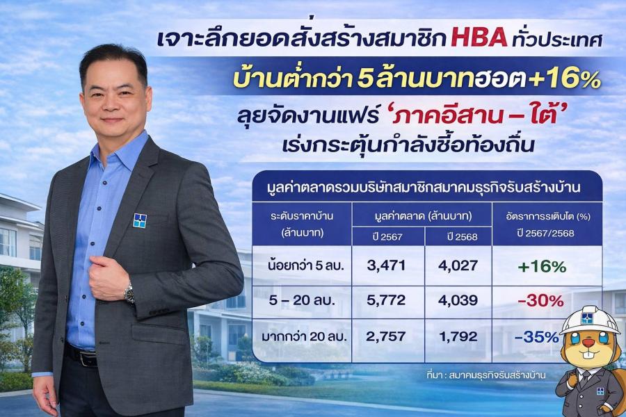 เจาะลึกยอดสั่งสร้างสมาชิก HBA ทั่วประเทศ บ้านต่ำกว่า 5 ล้านบาทฮอต +16% ลุยจัดงานแฟร์ ‘ภาคอีสาน – ใต้’ เร่งกระตุ้นกำลังซื้อท้องถิ่น