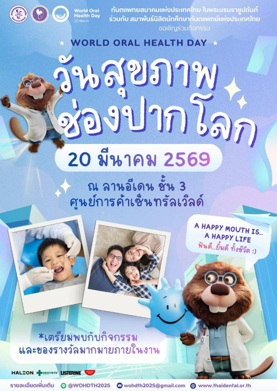 ทันตแพทยสมาคมฯ ชวนร่วมงาน World Oral Health Day 2026 จัดประกวดสุขภาพฟันดี สนุกกับกิจกรรม และของรางวัลมากมาย 20 มีนาคม นี้ ที่เซ็นทรัลเวิลด์