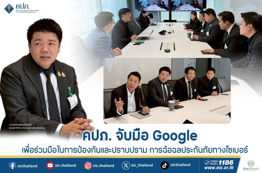 คปภ. จับมือ Google เพื่อร่วมมือในการป้องกันและปราบปรามการฉ้อฉลประกันภัยทางไซเบอร์