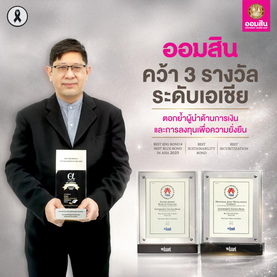 ออมสิน คว้า 3 รางวัลระดับเอเชีย หนุนขับเคลื่อนเศรษฐกิจเพื่อความยั่งยืน