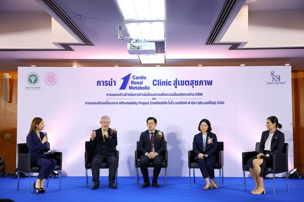 ภายในงาน ยังได้รับเกียรติจาก รศ.พิเศษ นพ.สถิตย์ นิรมิตมหาปัญญา ผู้อำนวยการสถาบันวิจัยและประเมินเทคโนโลยีทางการแพทย์ กรมการแพทย์ และพญ.อรยา กว้างสุขสถิต ผู้อำนวยการสำนักนิเทศระบบการแพทย์ กรมการแพทย์ ร่วมเสวนาในหัวข้อ “ปิดฉากความสำเร็จความร่วมมือโครงการ "Affordability Project" ในการยกระดับชีวิตผู้ป่วยเบาหวานในประเทศไทย” และการดำเนินงานของกรมการแพทย์ รวมถึงได้มีการนำเสนอการดำเนินงานคลินิกโรคหัวใจ ไต และเมแทบอลิซึม (Cardio-Renal-Metabolic Clinic: CRM Clinic) ที่โรงพยาบาลราชวิถี ซึ่งมีเป้าหมายเพื่อยกระดับมาตรฐานการดูแลแบบบูรณาการสำหรับโรคไม่ติดต่อเรื้อรัง (NCDs) รวมถึงภาวะแทรกซ้อนจากโรคอ้วน เบาหวาน และโรคหลอดเลือดหัวใจอื่นๆ ซึ่งสะท้อนถึงก้าวต่อไปในการพัฒนาการดูแลสุขภาพของประเทศ
