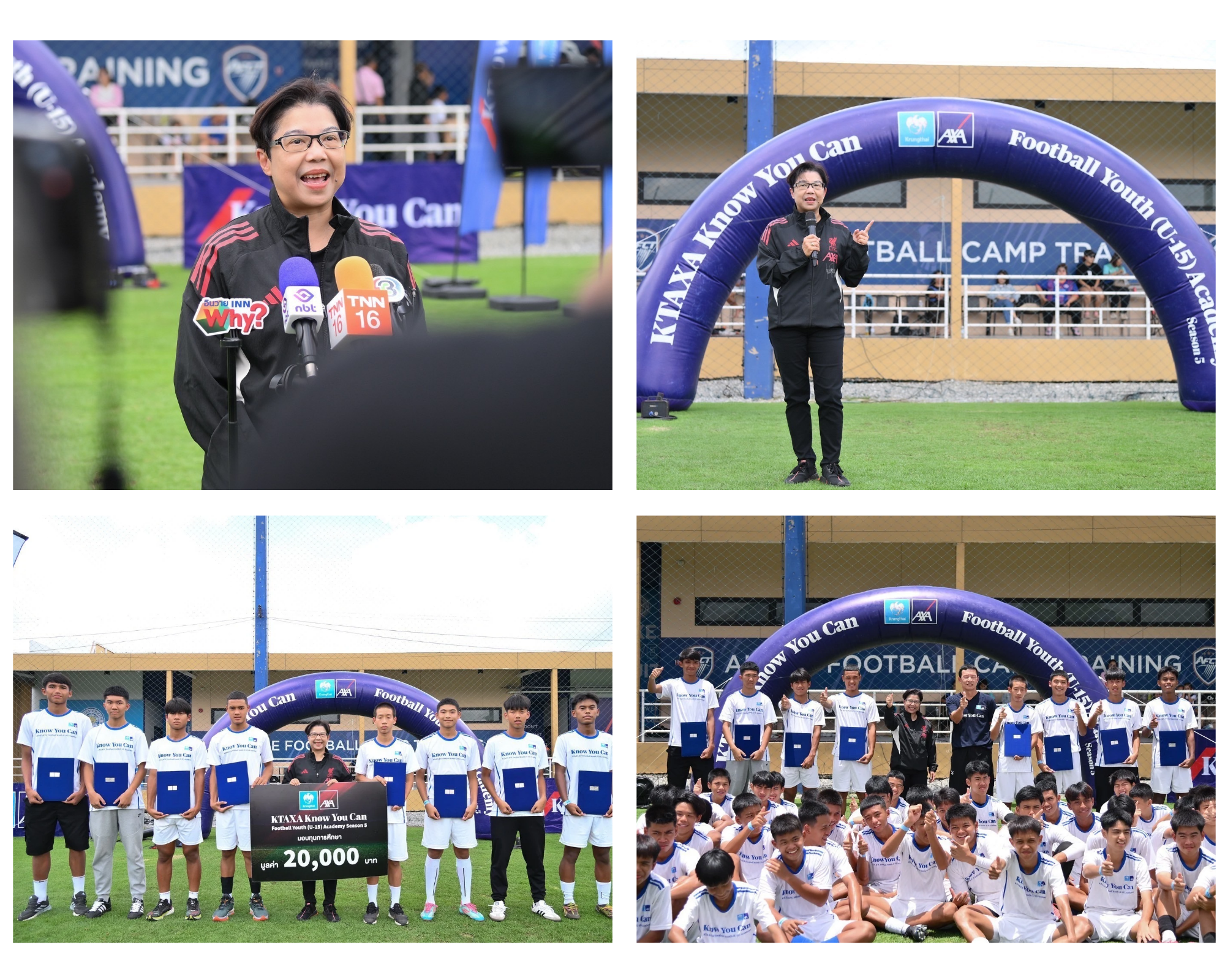 บมจ.กรุงไทย-แอกซ่า ประกันชีวิต นำโดย คุณบุปผาวดี โอวรารินท์ ประธานเจ้าหน้าที่บริหาร ฝ่ายการตลาด (คนที่ 5 จากซ้าย) จัดกิจกรรม "KTAXA Know You Can Football Youth (U15) Academy ปีที่ 5" สนามสุดท้าย ภาคกลาง ณ สนามอัลไพน์ ฟุตบอล แคมป์ เทรนนิ่ง กรุงเทพ ซึ่งได้รับการตอบรับเป็นอย่างดี โดยมีเยาวชนชายหญิงอายุระหว่าง 13-15 ปี เข้าร่วมกิจกรรมกว่า 600 คน เพื่อคัดเลือกสุดยอดเยาวชนไทยที่มีทักษะในกีฬาฟุตบอล สำหรับเยาวชนที่ผ่านการคัดเลือกจะได้รับทุนการศึกษามูลค่ารวมกว่า 200000 บาท พร้อมรับกรมธรรม์ประกันสุขภาพโรคร้ายแรงทุนประกันรวมมูลค่ากว่า 5000000 บาท