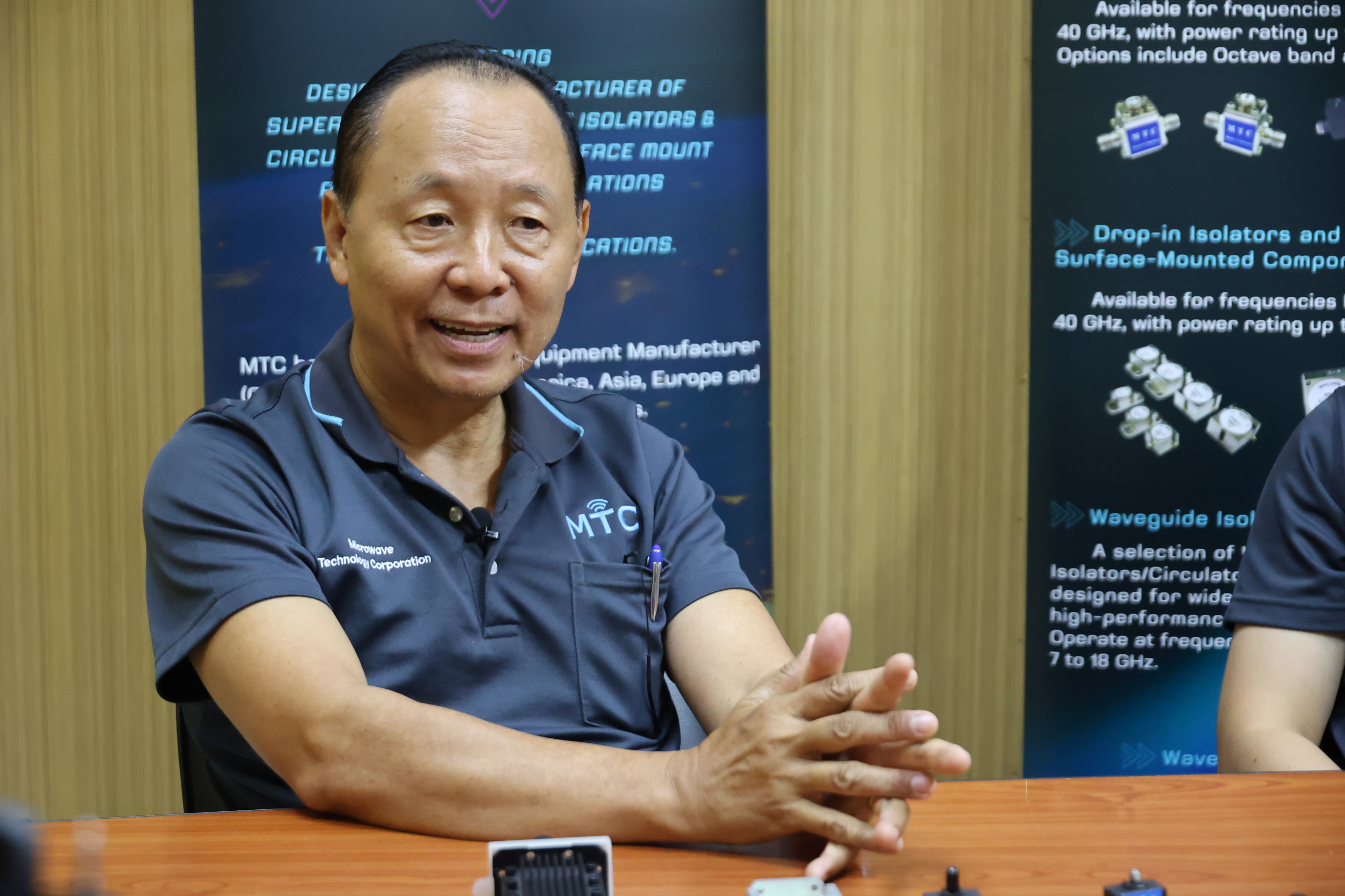 ทั้งสองช่วยขยายความเพิ่มเติมเกี่ยวกับกลไกการทำงานของชิ้นส่วนอิเล็กทรอนิกส์ที่MTC ผลิตขึ้น ให้ฟังว่าชิ้นส่วนดังกล่าวเป็นหนึ่งในชิ้นส่วนที่ถูกนำเข้าไปประกอบเพื่อสร้างอุปกรณ์การสื่อสาร ที่ต้องมีชิ้นส่วนในการรับและส่งของสัญญาณ รวมถึง ปกป้องคลื่นความถี่ไหลย้อนกลับ และป้องกันความเสียหายของทั้งระบบ