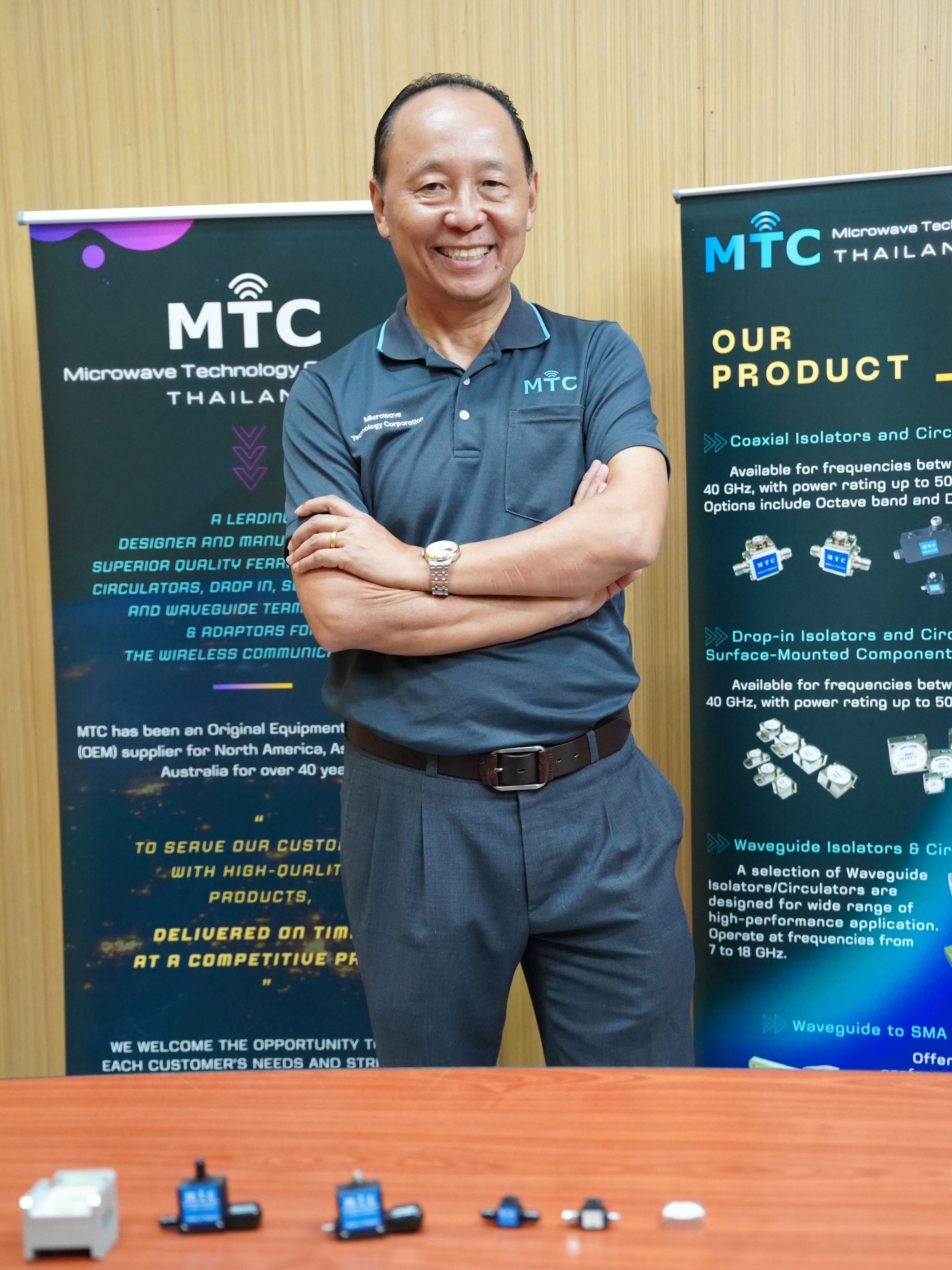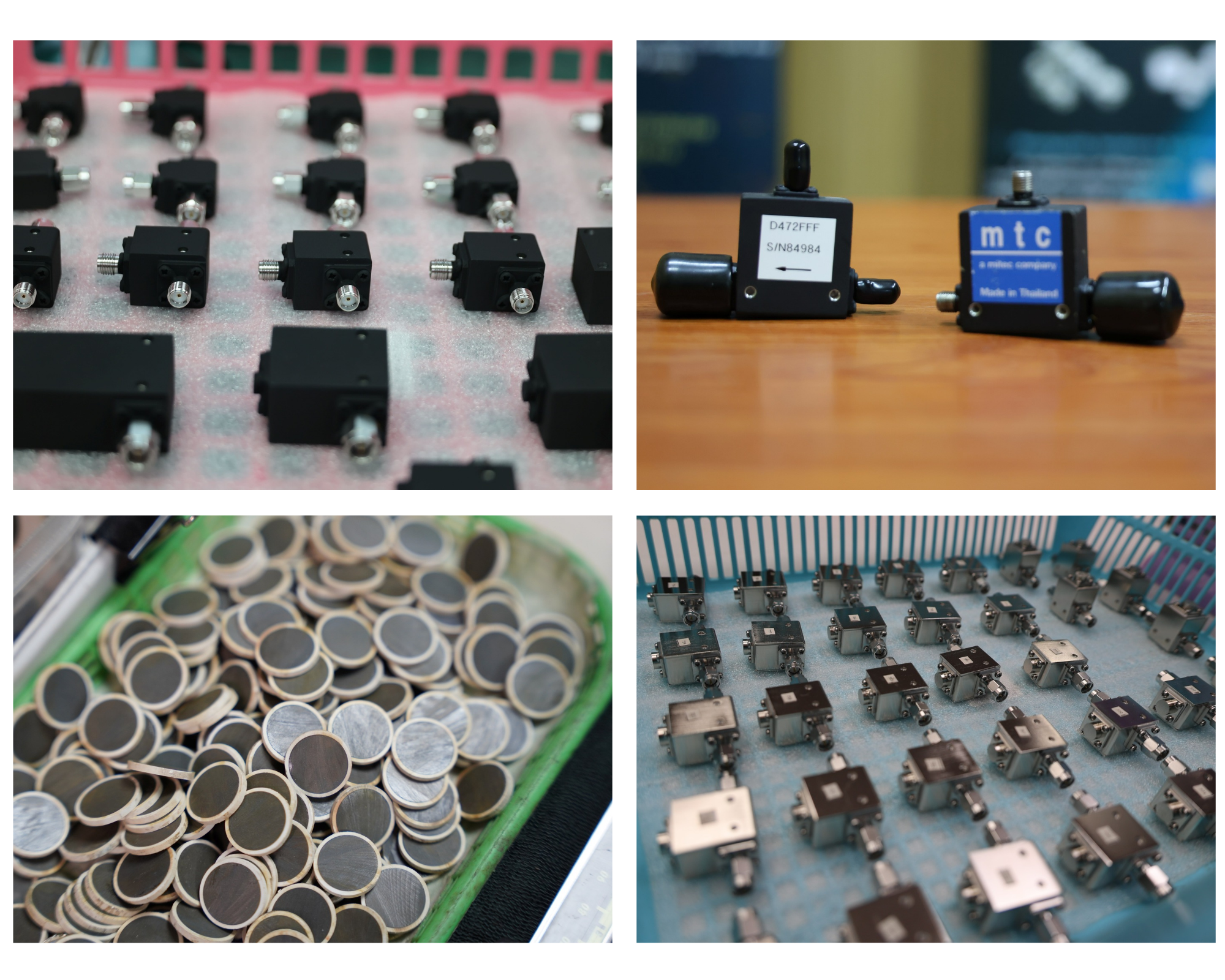 ทั้งนี้ ระบบอุปกรณ์การรับส่งสัญญาณสื่อสาร 1 ชุด จะประกอบด้วยชิ้นส่วนมากกว่า 200 ชิ้น ซึ่ง MTC เป็นหนึ่งใน Supply Chain ของการผลิตจุดเด่นของMTCคือสามารถผลิตสินค้าได้ตรงกับความต้องการของลูกค้า ในรูปแบบ Made to Orderเช่น ไอโซเลเตอร์ (Isolator) หรือเซอร์กูเรเตอร์ (Circulators) ภายใต้กระบวนการผลิตที่ได้รับการรับรองมาตรฐาน ISO 9001 สามารถรองรับช่วงความถี่ตั้งแต่ 350 MHz ถึง 40 GHz พร้อมควบคุมต้นทุนที่เหมาะสม ทำให้ขายสินค้าในราคาที่แข่งขันได้ อีกทั้ง บริการจัดส่งตรงเวลา ส่งถึงมือลูกค้าตามกําหนด