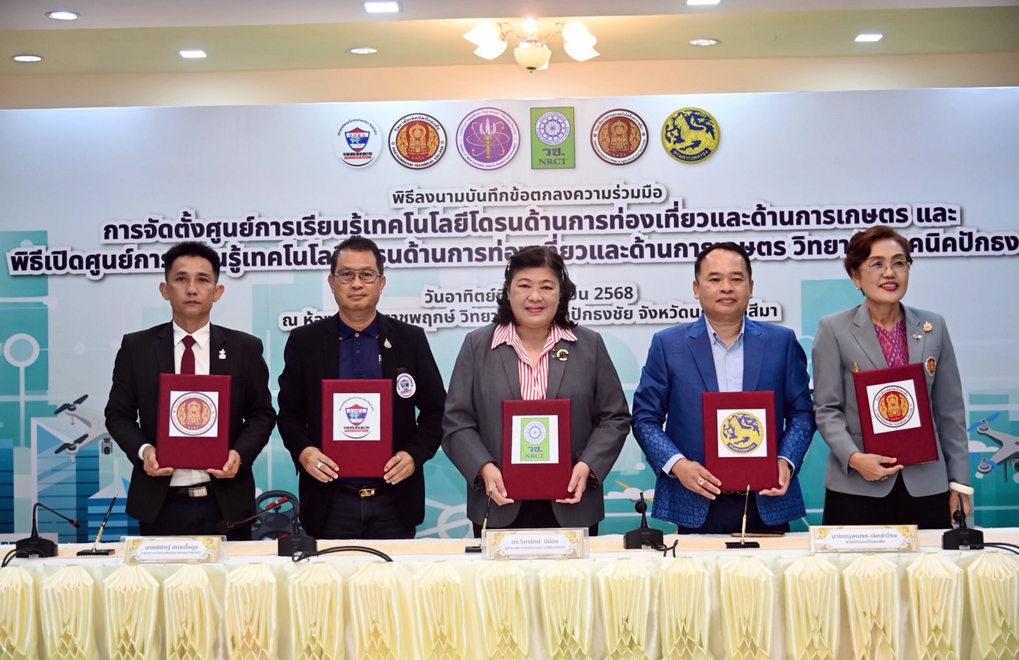 วช. สนับสนุนความร่วมมือสถาบันการศึกษาและหน่วยงานท้องถิ่น เปิดศูนย์การเรียนรู้เทคโนโลยีโดรนเพื่อการเกษตร ณ วิทยาลัยเทคนิคปักธงชัย เพื่อยกระดับเกษตรกรรมในพื้นที่