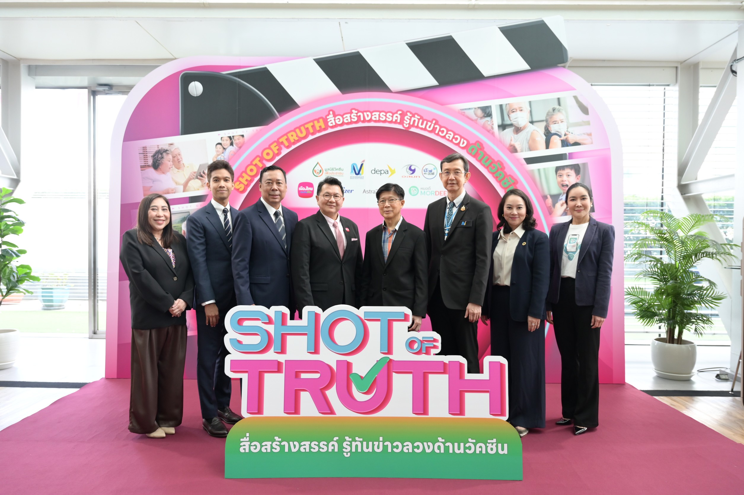 มูลนิธิวัคซีนเพื่อประชาชน ร่วมกับ สถาบันวัคซีนแห่งชาติ ผนึกภาคีเครือข่ายทั้งภาครัฐและเอกชน ได้แก่ สำนักงานส่งเสริมเศรษฐกิจดิจิทัล (depa) ศูนย์ชัวร์ก่อนแชร์ สำนักข่าวไทย อสมท บริษัท เมืองไทยประกันชีวิต จำกัด (มหาชน) บริษัท ไฟเซอร์ (ประเทศไทย) จำกัด บริษัท แอสตร้าเซนเนก้า (ประเทศไทย) จำกัด และ MorDee (หมอดี) แพลตฟอร์มบริการสุขภาพอัจฉริยะ โดย ทรู ดิจิทัล กรุ๊ป เปิดตัวโครงการ “Shot of Truth สื่อสร้างสรรค์ รู้ทันข่าวลวงด้านวัคซีน” ขอเชิญชวนนักเรียน นักศึกษา คนรุ่นใหม่ร่วมประกวดคลิปวิดีโอสั้น เพื่อสร้างความตระหนักถึงการสื่อสารข้อมูลที่ถูกต้องเกี่ยวกับวัคซีนและโรคระบบทางเดินหายใจที่สามารถป้องกันได้ด้วยวัคซีน สร้างภูมิคุ้มกันข่าวลวง ตลอดจนรับมือกับข้อมูลบิดเบือนที่เผยแพร่ผ่านสื่อสังคมออนไลน์ เพื่อให้ประชาชนสามารถเลือกรับวัคซีนได้อย่างเหมาะสม เสริมสร้างระบบสาธารณสุขของประเทศให้เข้มแข็ง