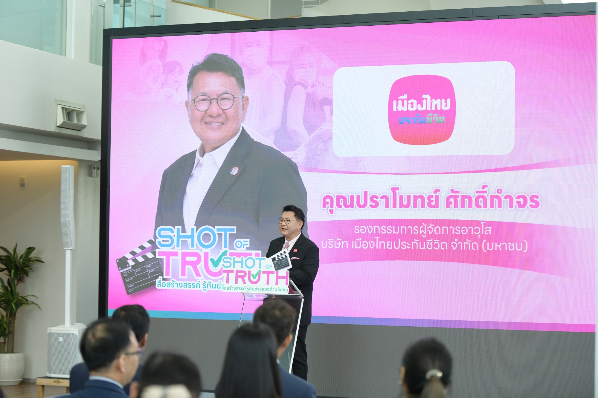 คุณปราโมทย์ ศักดิ์กำจร รองกรรมการผู้จัดการอาวุโส บริษัท เมืองไทยประกันชีวิต จำกัด (มหาชน) กล่าวว่า “เมืองไทยประกันชีวิต ในฐานะผู้นำด้านประกันชีวิตและสุขภาพ เรามุ่งมั่นสร้างความสุขและรอยยิ้มที่ยั่งยืนให้กับคนไทย โดยยึดหลักความน่าเชื่อถือและความโปร่งใส ซึ่งถือเป็นหัวใจสำคัญที่ทำให้องค์กรได้รับความไว้วางใจมาอย่างต่อเนื่องยาวนาน ด้วยความเชี่ยวชาญในหลายมิติ ทั้งการนำนวัตกรรมมาพัฒนาผลิตภัณฑ์ พัฒนาพนักงานด้วยทักษะการใช้ข้อมูลและปัญญาประดิษฐ์ ทักษะด้านการสื่อสารและการบริหาร และยังให้ความสำคัญกับนโยบายด้าน ESG สะท้อนความมุ่งมั่นของบริษัทในการสร้างผลกระทบเชิงบวกในมิติด้านสิ่งแวดล้อม มิติด้านสังคม มิติด้านบรรษัทภิบาลและเศรษฐกิจ โดยได้บูรณาการแนวทางการพัฒนาอย่างยั่งยืนผนวกเข้ากับกลยุทธ์การดำเนินธุรกิจ เพื่อให้ทุกหน่วยงานในบริษัทฯ ได้นำไปเป็นแนวปฏิบัติในการดำเนินงานอย่างเป็นรูปธรรม เราจึงเล็งเห็นถึงความสำคัญของการขับเคลื่อนด้วยข้อมูล (Data Driven) รับผิดชอบต่อความถูกต้องและความปลอดภัยของข้อมูล อันเป็นพื้นฐานสำคัญในการตัดสินใจเรื่องต่าง ๆ ต่อยอดให้เกิดประโยชน์และคุณค่าต่อสังคม เราพร้อมนำองค์ความรู้ความเชี่ยวชาญมาร่วมสนับสนุนการดำเนินโครงการ เพื่อให้ประชาชนมีความรู้ความเข้าใจด้านสุขภาพที่ถูกต้อง ไม่ตกเป็นเหยื่อของข่าวลวง สามารถตัดสินใจรับวัคซีนป้องกันโรคได้เหมาะสม เพื่อดูแลสุขภาพของตนเองและคนที่เรารักได้อย่างปลอดภัย ซึ่งโครงการนี้จึงเปรียบเสมือน “วัคซีนซ้อนวัคซีน” ที่จะช่วยสร้างภูมิคุ้มกันที่แข็งแกร่งให้กับสังคมไทยได้เป็นอย่างดี”