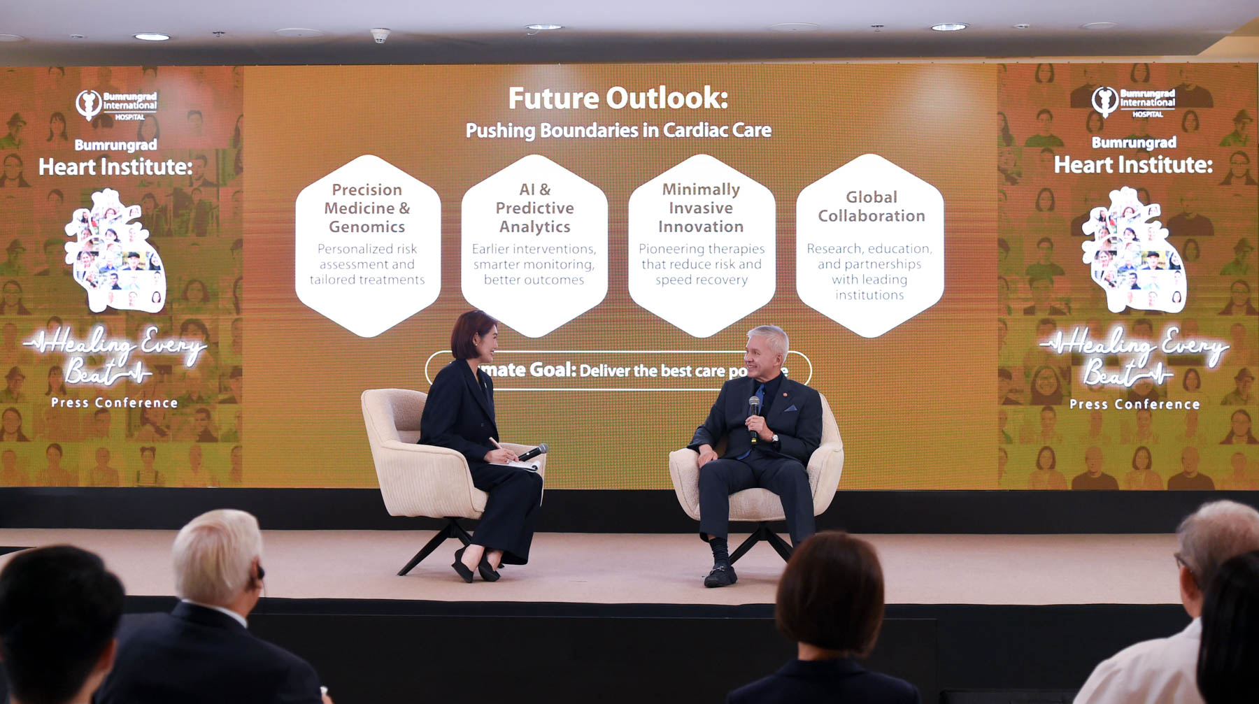 ด้าน ดร.อาทิรัตน์ จารุกิจพิพัฒน์ ประธานเจ้าหน้าที่บริหาร โรงพยาบาลบำรุงราษฎร์ กล่าวเสริมว่า “บำรุงราษฎร์ตระหนักถึงปัญหาโรคหัวใจและมุ่งมั่นที่จะทำให้ผู้ป่วยหายจากภาวะเจ็บป่วยและมีคุณภาพชีวิตที่ดีขึ้นได้ สถาบันโรคหัวใจของเราเป็นศูนย์ความเป็นเลิศทางการแพทย์ที่พร้อมดูแลรักษาผู้ป่วยโรคหัวใจได้อย่างครอบคลุม ไม่ว่าจะเป็นเคสที่ยากหรือซับซ้อน ทั้งนี้ เทคโนโลยีแม้จะมีประสิทธิภาพเพียงใด ก็ต้องอาศัยความชำนาญและประสบการณ์ของแพทย์ในการให้คำแนะนำและรักษาอย่างเหมาะสมกับผู้ป่วยแต่ละราย งานแถลงข่าว Bumrungrad Heart Institute: Healing Every Beat ในครั้งนี้ จึงเป็นการตอกย้ำถึงความมุ่งมั่นของบำรุงราษฎร์ในการพัฒนาการรักษาอย่างต่อเนื่อง เพื่อส่งมอบทางเลือกที่มีประสิทธิภาพ ปลอดภัย และได้มาตรฐานระดับโลก เพื่อให้ผู้ป่วยได้รับผลลัพธ์การรักษาที่มีประสิทธิภาพ”