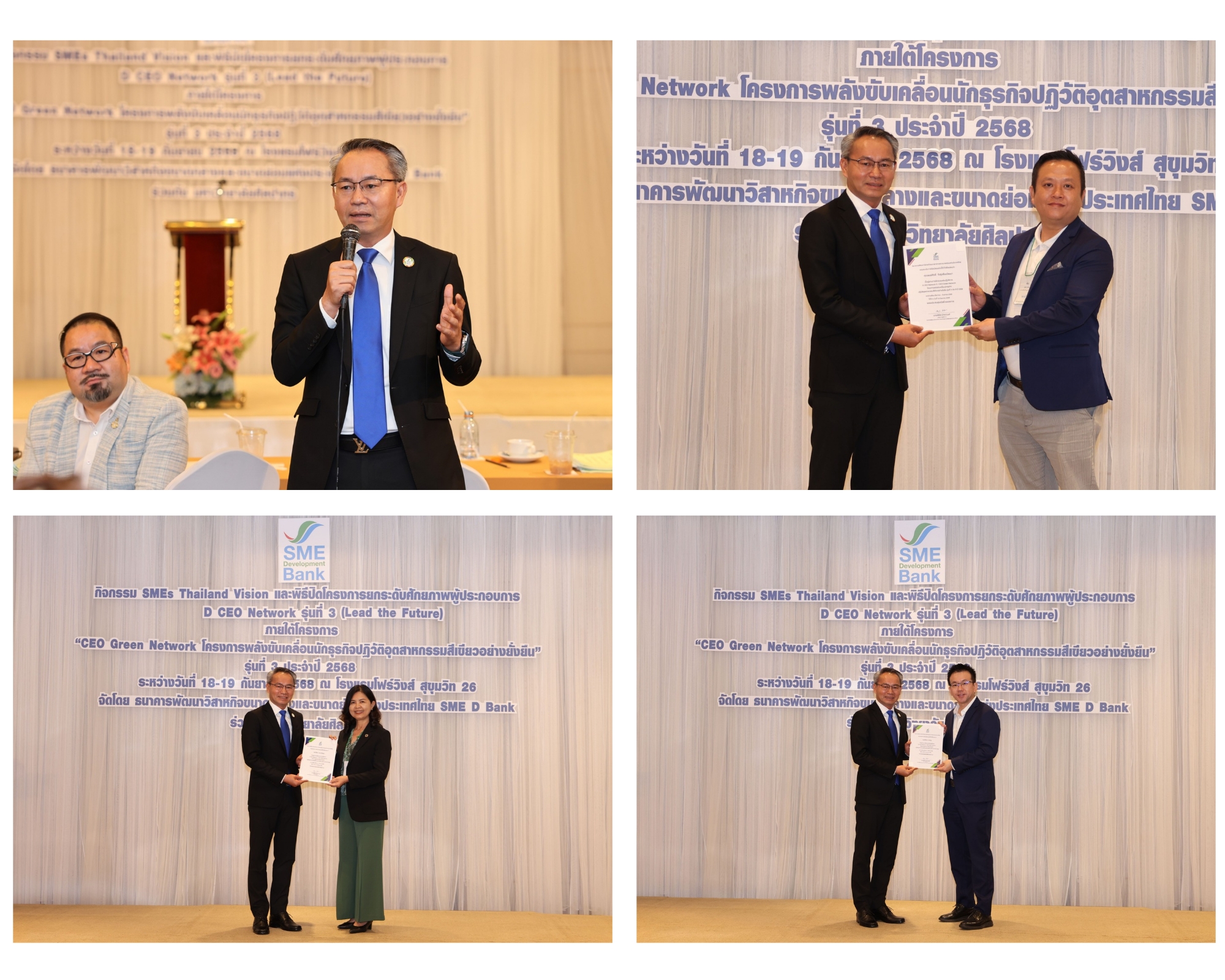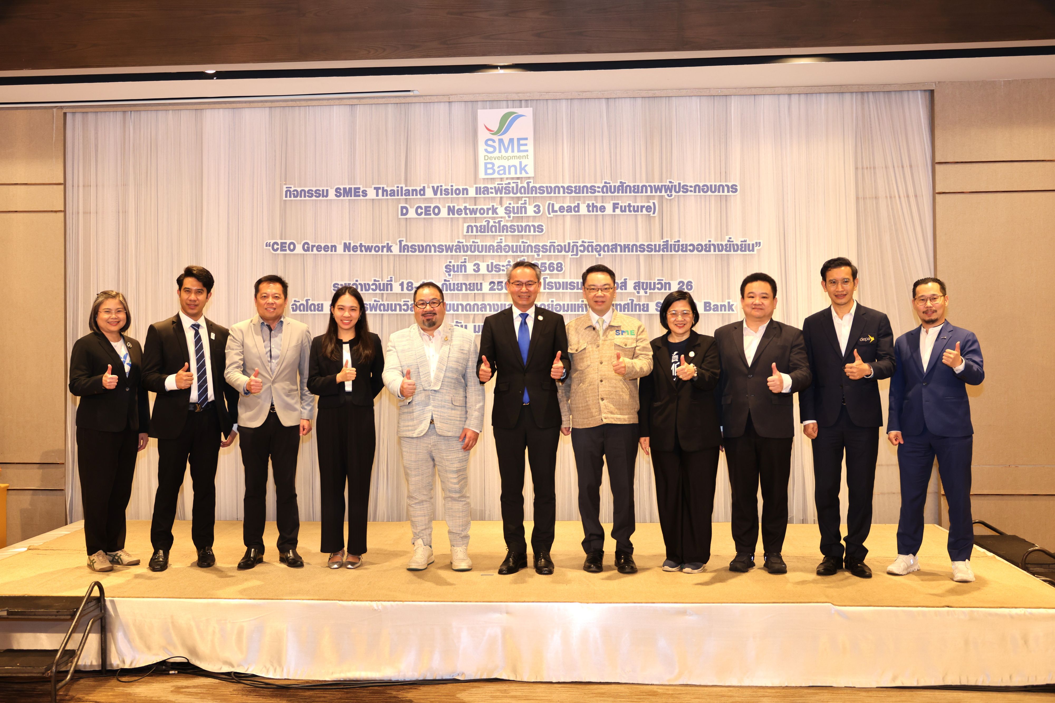 ธนาคารพัฒนาวิสาหกิจขนาดกลางและขนาดย่อมแห่งประเทศไทย (ธพว.) หรือ SME D Bank โดยนายแสงชัย ธีรกุลวาณิช กรรมการธนาคาร นายพิชิต มิทราวงศ์ กรรมการผู้จัดการ และผู้บริหารธนาคาร และหน่วยงานพันธมิตร ร่วมแสดงความยินดีและมอบใบประกาศนียบัตรให้แก่เจ้าของกิจการ ผู้บริหาร และทายาทธุรกิจกว่า 110 ราย จากหลากหลายอุตสาหกรรม เช่น การผลิต ก่อสร้าง อสังหาริมทรัพย์ เทคโนโลยี พลังงาน การส่งออก ค้าปลีก-ค้าส่ง การบริการ และเกษตรแปรรูป เป็นต้น ที่เข้าร่วมและผ่านการอบรม โครงการพัฒนาศักยภาพธุรกิจสำหรับผู้ประกอบการเอสเอ็มอีไทย ภายใต้โครงการ “D CEO Network” รุ่นที่ 3 : Lead the Future เดินหน้า SME Thai ขับเคลื่อนประเทศสู่โลกใหม่ จัดขึ้นเพื่อยกระดับผู้นำธุรกิจรุ่นใหม่ สนับสนุนให้เกิดการสร้างเครือข่าย เชื่อมโยงความร่วมมือ นำไปสู่การเพิ่มขีดความสามารถการแข่งขันทางธุรกิจ หรือ SME Ecosystem ควบคู่กับการสนับสนุนเข้าถึงแหล่งทุนจาก SME D Bank สร้างพลังสำคัญในการขับเคลื่อนเศรษฐกิจไทยเติบโตอย่างยั่งยืน