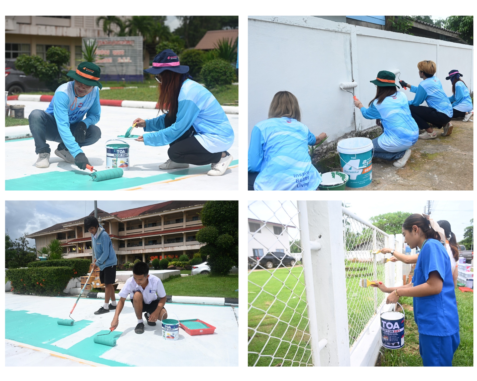 นอกจากนี้ ยังได้ลงพื้นที่อาสาทาสีฟื้นฟู โรงเรียนภูมิซอลวิทยา ที่อยู่ในพื้นที่ใกล้เคียงกันด้วย เนื่องจากได้รับความเสียหายจากแรงสั่นสะเทือนและสะเก็ดระเบิด ทำให้หลายอาคารเรียนและสนามกิจกรรมทรุดโทรม โดยพนักงานจิตอาสาและนักเรียนมาร่วมทาสีฟื้นฟูพื้นสนามโรงเรียนด้วยผลิตภัณฑ์ TOA Roof Paint สีคุณภาพสูง สำหรับทาสนามพื้นคอนกรีต ช่วยการยึดเกาะอย่างดีเยี่ยม พร้อมมอบผลิตภัณฑ์สี 4Seasons สำหรับปรับปรุงอาคารเรียนต่างๆ ให้กลับมามีสีสันที่สดใส สวยงาม เตรียมต้อนรับการเปิดภาคเรียนใหม่ให้กับน้องๆ นักเรียนทุกคน