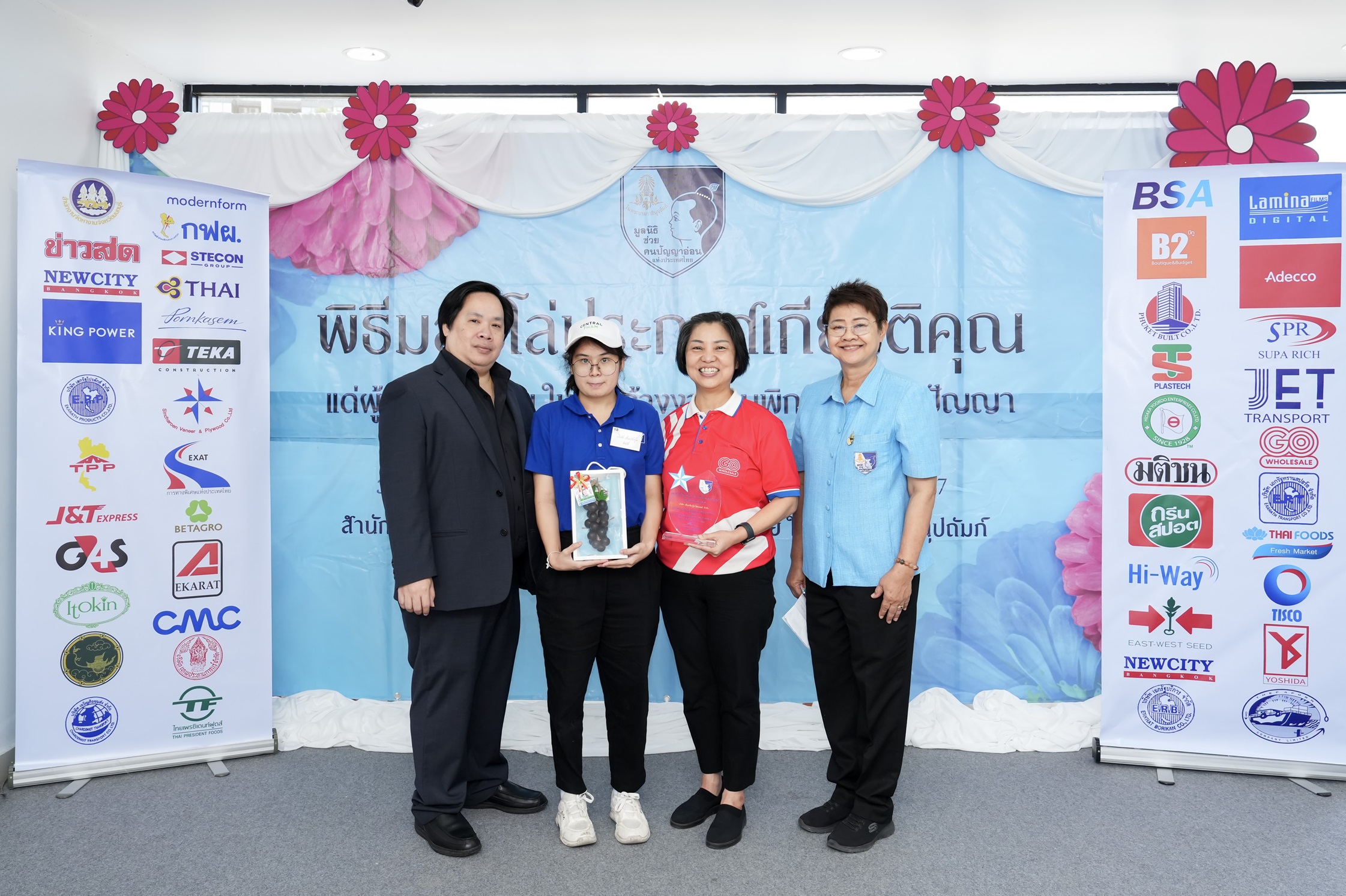 โก โฮลเซลล์ (GO WHOLESALE) ศูนย์ค้าส่งวัตถุดิบอาหาร ที่มีความสดใหม่ตลอดเวลาเพื่อผู้ประกอบการ ในเครือเซ็นทรัล รีเทล โดย คุณนฤมล ชุติปัญญาภรณ์ ผู้อำนวยการอาวุโส ฝ่ายบริหารสินค้าอาหารสด เข้ารับโล่ประกาศเกียรติคุณ ในฐานะองค์กรผู้สนับสนุนการจ้างงานคนพิการทางสติปัญญา จาก ดร.สายสม วงศาสุลักษณ์ ประธานกรรมการบริหาร มูลนิธิช่วยคนปัญญาอ่อนแห่งประเทศไทย ในพระบรมราชินูปถัมภ์ ซึ่ง โก โฮลเซลล์ รับซื้อผักสลัดคุณภาพดี พร้อมร่วมส่งเสริมพัฒนาทักษะ การสร้างอาชีพให้น้องๆ ผู้บกพร่องทางสติปัญญา จาก ศูนย์ฟื้นฟูสมรรถภาพราชานุกูล (บางพูน) จ.ปทุมธานี ผ่านโครงการ ‘บางพูนโมเดล’ ทำให้น้องๆ และครอบครัวมีรายได้เพิ่มขึ้น