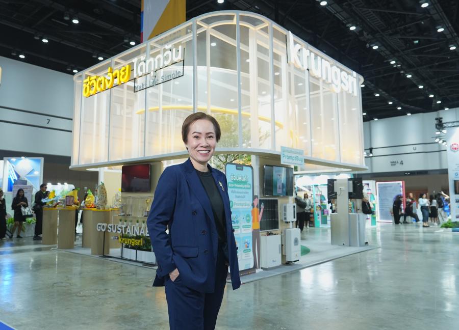 ปีนี้กรุงศรีนำเสนอพื้นที่จัดแสดงภายใต้แนวคิด “GO Sustainable with krungsri” ที่ออกแบบอย่างใส่ใจสิ่งแวดล้อม โดยการนำโครงสร้างบางส่วนจากงานเดิมกลับมาใช้ซ้ำ (Reuse) และเลือกใช้วัสดุที่เป็นมิตรต่อสิ่งแวดล้อม ถ่ายทอดแนวคิด “หลักคิด–หลักปฏิบัติ” ด้านความยั่งยืนของธนาคารและบริษัทในเครือในมิติที่จับต้องได้ ภายในบูธผู้เข้าชมจะได้พบกับกิจกรรมอินเตอร์แอคทีฟที่ทั้งสนุกและให้ความรู้ ไม่ว่าจะเป็น เกมแยกขยะ เสริมทักษะการจัดการของเสียอย่างถูกวิธี โซนถ่ายภาพ–แชร์โซเชียล พร้อมรับของที่ระลึก Krungsri Reusable Bag รวมถึง นิทรรศการที่นำเสนอผลงานชนะเลิศจาก From Waste to Wow Sustainable Sculpture Contest 2025 by Krungsri ศิลปะสร้างสรรค์จากวัสดุรีไซเคิลที่สะท้อนพลังความคิดใหม่ของเยาวชน นอกจากนี้ยังมีการแนะนำ ผลิตภัณฑ์และบริการด้าน Sustainable Finance ที่ออกแบบมาเพื่อสนับสนุนการเปลี่ยนผ่านสู่ธุรกิจคาร์บอนต่ำอย่างเป็นรูปธรรม ซึ่งกรุงศรีต้องการสร้างพื้นที่ที่ผสานทั้งความรู้ ความบันเทิง และแรงบันดาลใจให้ผู้เข้าชมได้สัมผัสการเงินเพื่อความยั่งยืนในทุกมิติ
