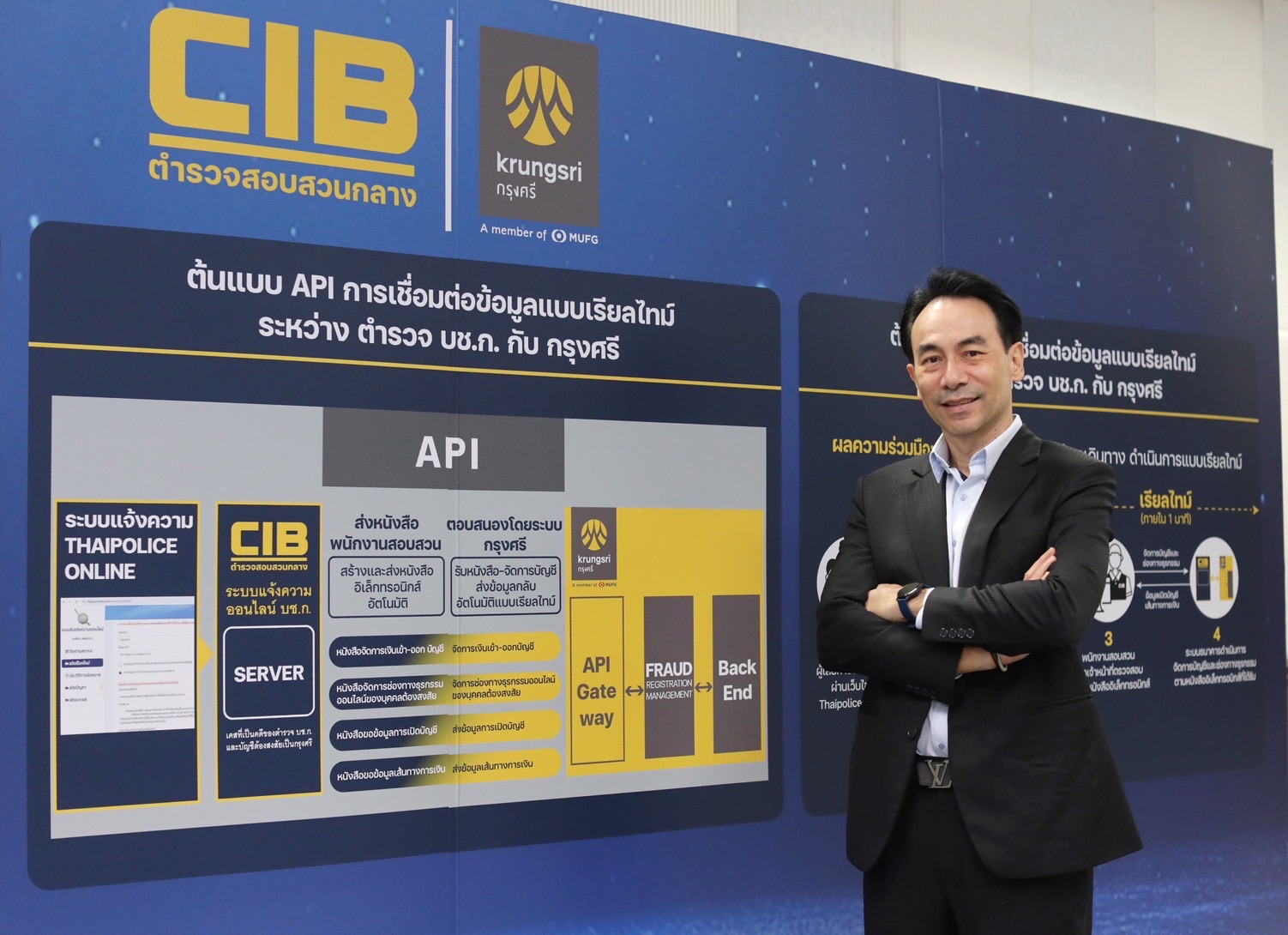 กองบัญชาการตำรวจสอบสวนกลาง พบว่าสถิติผลการจับกุม ในปัจจุบันประมาณ 60 - 80% ของคดีอาชญากรรมทางเทคโนโลยี และอาชญากรรมที่เกี่ยวกับการเงิน มีความซับซ้อนและเปลี่ยนแปลงรูปแบบไปอย่างรวดเร็ว ซึ่งสร้างความเสียหายให้กับประชาชนจำนวนมาก ยกตัวอย่างเช่น ปฏิบัติการ CIB breaks up online scam syndicate สกัดกั้นภัยออนไลน์ข้ามชาติ มูลค่าความเสียหายกว่า 800 ล้านบาท ปฏิบัติการ “GHOST COMPANY” จับบริษัทผีแฝงเปิดบัญชีม้า 6 จุด ในพื้นที่วังน้อย ตรวจค้นกลุ่มบริษัทต้องสงสัยที่ไม่มีการประกอบกิจการจริง ตามที่มีการแจ้งจดทะเบียนกับกรมพัฒนาธุรกิจการค้า เป็นการจดจัดตั้งบริษัทขึ้นมาเพื่อใช้ชื่อของบริษัทมาเปิดบัญชีม้าและใช้ในการทำธุรกรรมทางการเงินในรูปแบบของบริษัทจำกัด รวบนายทุนตัวการใหญ่ขบวนการจัดหาบัญชีม้าข้ามชาติ และคดี Shell Company (ม้า Worldwide) และทลาย ‘คอกม้าจีนเทา’ เครือข่ายฟอกเงินแก๊งคอลเซ็นเตอร์ รวบ 31 ผู้ต้องหา ไทย-จีน ยึดทรัพย์กว่า 6 ล้านบาท ซึ่งจากผลการดำเนินการตรวจค้นจับกุม ที่ผ่านมานั้น ต้องอาศัยความร่วมมือจากทุกภาคส่วน โดยเฉพาะอย่างยิ่งในส่วนของทางสถาบันการเงิน ในการยกระดับมาตรการจัดการกับบัญชีม้าที่เป็นของบุคคล และบัญชีม้าที่เป็นนิติบุคคล เพื่อเพิ่มประสิทธิภาพในการปราบปรามอาชญากรรมที่เกี่ยวข้อง และลดผลกระทบต่อประชาชน โดยความร่วมมือครั้งนี้จะช่วยบูรณาการกระบวนการการประสานข้อมูลและการดำเนินการในส่วนที่เกี่ยวข้อง ระหว่างกรุงศรีกับบช.ก. เพื่อเชื่อมต่อข้อมูลผ่านทางระบบ API แบบเรียลไทม์ ช่วยลดระยะเวลาในการดำเนินการ ลดภาระของประชาชนที่ตกเป็นเหยื่อ เพิ่มความโปร่งใสในการตรวจสอบ และสร้างความมั่นใจให้กับประชาชนในการทำธุรกรรมออนไลน์