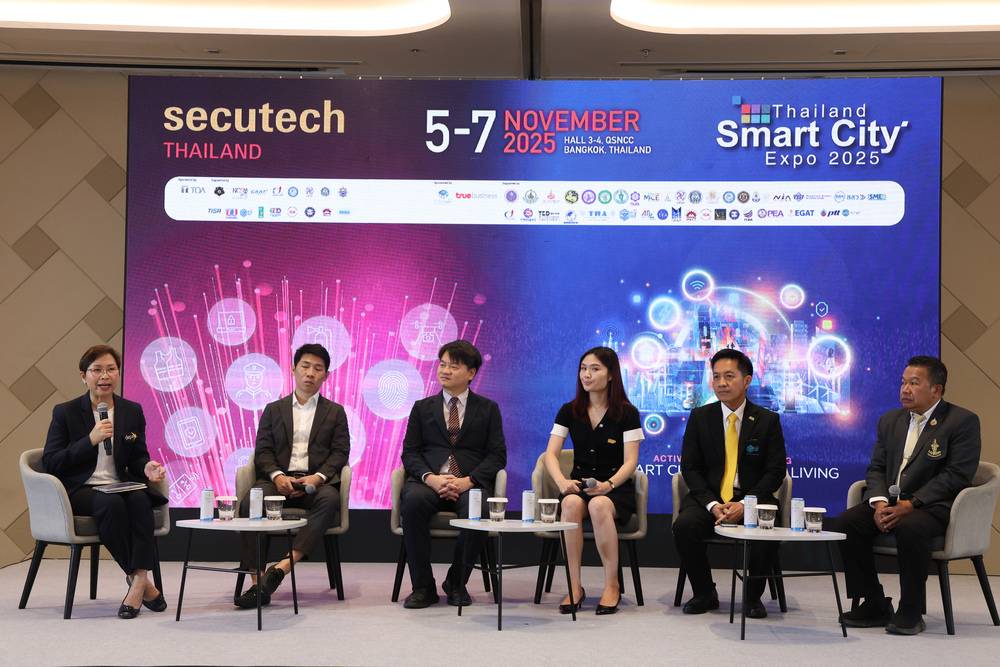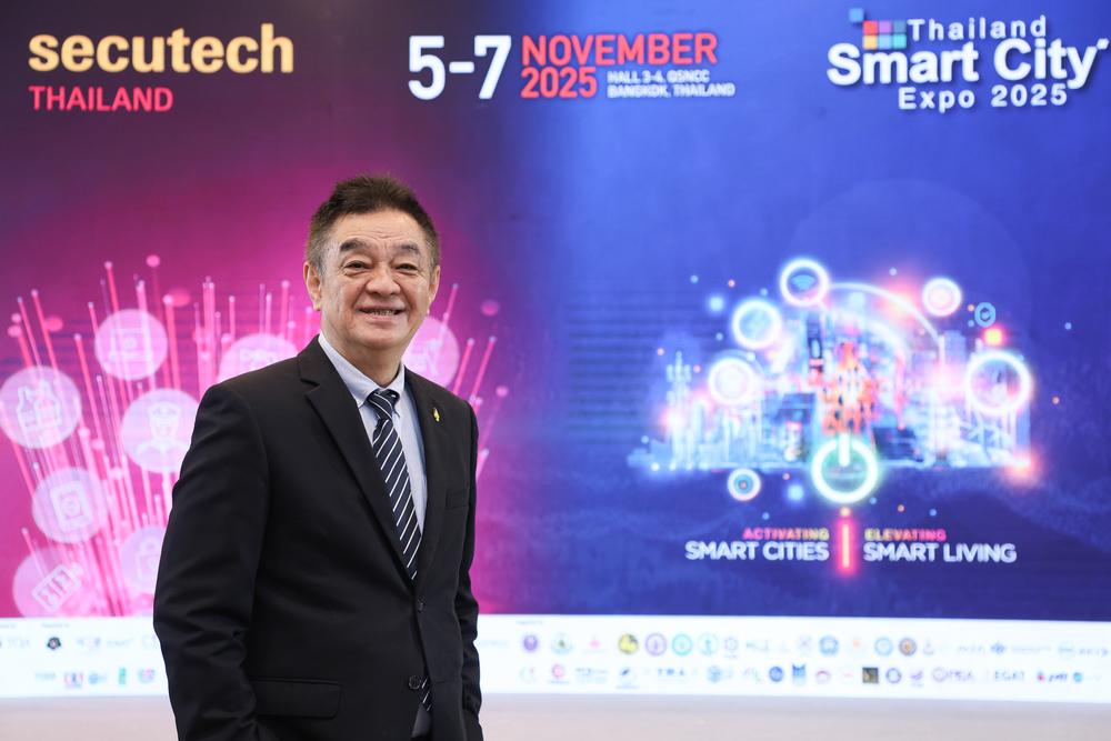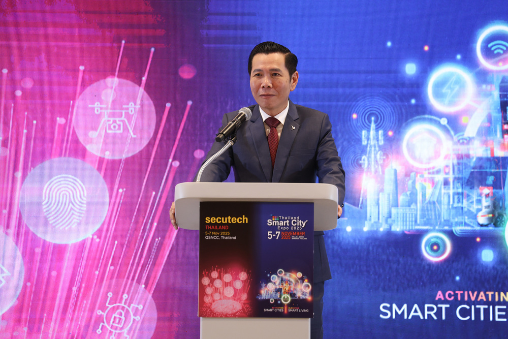 ผศ.ดร.ณัฐพล นิมมานพัชรินทร์ ผู้อำนวยการใหญ่ สำนักงานส่งเสริมเศรษฐกิจดิจิทัล หรือ ดีป้า พร้อมด้วย นายศักดิ์ชัย ภัทรปรีชากุล กรรมการบริหาร บริษัท เอ็น.ซี.ซี. แมนเนจเม้นท์ แอนด์ ดิเวลลอปเม้นท์ จำกัด และ มร.อิสราเอล โกโกล ผู้จัดการกลุ่ม บริษัท เมสเซ่ แฟรงค์เฟิร์ต (ฮ่องกง) จำกัด สาขาไต้หวัน ร่วมแถลงข่าวความพร้อมการจัดงาน ‘Thailand Smart City Expo 2025’ มหกรรมแสดงเทคโนโลยีและนวัตกรรมดิจิทัลเพื่อการพัฒนาเมืองอัจฉริยะ ที่มาพร้อมแนวคิด Activating Smart Cities Elevating Smart Living: การพัฒนาเมืองอัจฉริยะ เพื่อยกระดับคุณภาพชีวิตของประชาชนอย่างยั่งยืน และงาน ‘Secutech Thailand 2025’ งานแสดงเทคโนโลยีระบบความปลอดภัยและการป้องกันอัคคีภัย ซึ่งทั้งสองงานจะมีขึ้นระหว่างวันที่ 5 – 7 พฤศจิกายนนี้ที่ศูนย์การประชุมแห่งชาติสิริกิติ์