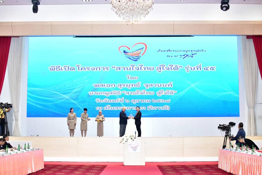 เอไอเอ ประเทศไทย โดย นายสุวิรัช พงศ์เสาวภาคย์ ผู้อำนวยการฝ่ายกิจการภายนอก รับมอบโล่ประกาศเกียรติคุณจาก พลเอกสุรยุทธ์ จุลานนท์ ประธานองคมนตรี และนายกมูลนิธิ “สานใจไทย สู่ใจใต้” ในพิธีเปิดโครงการ “สานใจไทย สู่ใจใต้” รุ่นที่ 45 เพื่อเป็นการแสดงความขอบคุณที่ให้การสนับสนุนกรมธรรม์ประกันอุบัติเหตุกลุ่มฟรีแก่เยาวชนและครูพี่เลี้ยงที่เข้าร่วมโครงการ “สานใจไทย สู่ใจใต้” รุ่นที่ 45 โดยเอไอเอ ประเทศไทย ได้มอบกรมธรรม์ประกันอุบัติเหตุกลุ่มต่อเนื่องเป็นรุ่นที่ 5 จำนวน 470 กรมธรรม์ ประกอบด้วยเยาวชน 440 คน และครูพี่เลี้ยง 30 คน โดยโครงการฯ มีวัตถุประสงค์เพื่อนำเยาวชนที่ด้อยโอกาส และได้รับผลกระทบจากเหตุการณ์ความไม่สงบในจังหวัดชายแดนภาคใต้ (จังหวัดปัตตานี ยะลา นราธิวาส สตูล และสงขลา) มาร่วมเรียนรู้วิถีชีวิตความเป็นอยู่ในสังคมพหุวัฒนธรรมที่มีความหลากหลายของเชื้อชาติ ศาสนา ภาษา และวัฒนธรรม รวมทั้งการใช้ชีวิตอยู่กับครอบครัวอุปถัมภ์ ในพื้นที่กรุงเทพมหานครและ 9 จังหวัดภาคกลาง จำนวน 320 คน และพื้นที่จังหวัดฝั่งทะเลอันดามัน จำนวน 120 คน