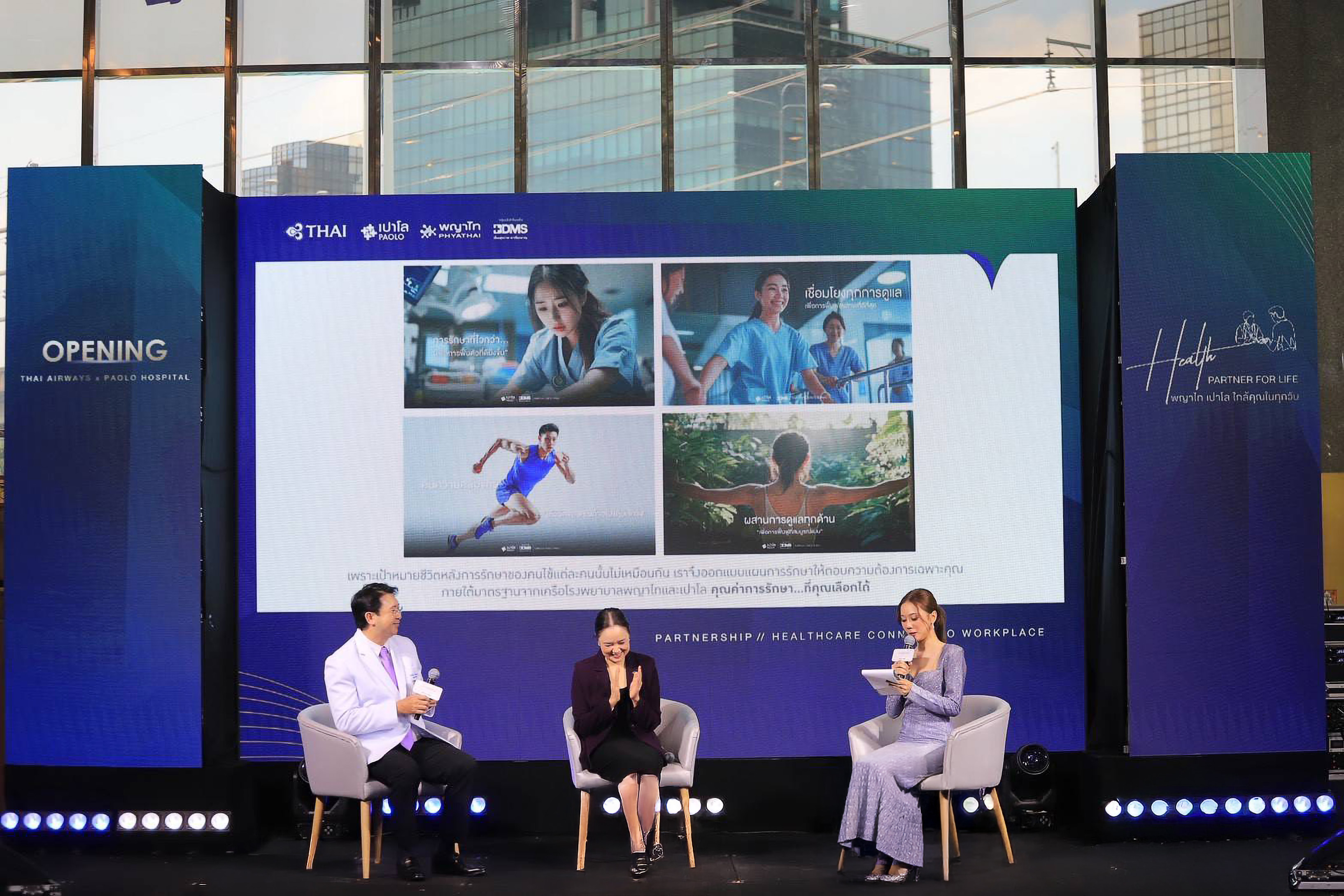 พิธีเปิดได้รับเกียรติจาก นายอัฐ ทองแตง ประธานเจ้าหน้าที่บริหารเครือโรงพยาบาลพญาไท–เปาโล เป็นประธานเปิดงานพร้อมด้วย นายชาย เอี่ยมศิริ ประธานเจ้าหน้าที่บริหาร บริษัท การบินไทย จำกัด (มหาชน) และคณะผู้บริหารจากทั้งสององค์กร รวมถึงผู้แทนสำนักงานประกันสังคม หน่วยงานพันธมิตร และสื่อมวลชนเข้าร่วมอย่างพร้อมเพรียง สะท้อน “ก้าวสำคัญของบทบาทพันธมิตรสุขภาพระดับองค์กร” ที่ตั้งเป้าพัฒนาสุขภาพคนทำงานขององค์กรไปพร้อมกัน