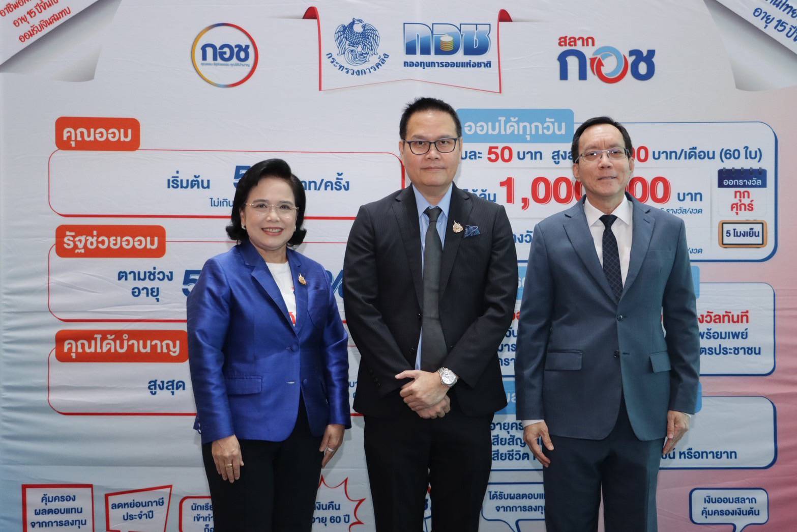 กองทุนการออมแห่งชาติ (กอช.) จัดงานแถลงข่าวเปิดตัวความร่วมมือระหว่าง กองทุนการออมแห่งชาติ (กอช.) กับหน่วยงาน เพื่อขยายช่องทางการจำหน่าย และชำระเงิน สลาก กอช. ยกระดับการออมของคนไทยเข้าสู่โลกดิจิทัล และจุดจำหน่าย ครอบคลุมทุกช่องทาง ให้เป็นเรื่องง่าย ปลอดภัย สนุก และลุ้นรางวัลใหญ่ 1 ล้านบาททุกสัปดาห์ ณ ห้องกำปั่นเงิน ชั้น 21 อาคาร 150 ปี กระทรวงการคลัง