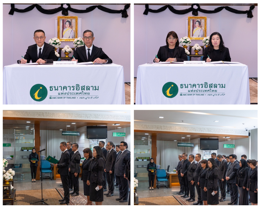 ธนาคารอิสลามแห่งประเทศไทย (ไอแบงก์) นำโดย นายยงยุทธ ชัยพรหมประสิทธิ์ ประธานกรรมการ พร้อมด้วย ดร.ทวีลาภ ฤทธาภิรมย์ กรรมการและผู้จัดการธนาคาร คณะกรรมการ และคณะผู้บริหาร จัดพิธีแสดงความอาลัยถวายแด่สมเด็จพระนางเจ้าสิริกิติ์ พระบรมราชินีนาถ พระบรมราชชนนีพันปีหลวง พร้อมยืนสงบนิ่ง และร่วมลงนามถวายความอาลัย เพื่อน้อมรำลึกในพระมหากรุณาธิคุณ ด้วยพระเมตตาที่ทรงมีต่อพสกนิกรชาวไทยมุสลิมและพสกนิกรทุกหมู่เหล่ารวมทั้งการทำนุบำรุงศาสนาอิสลาม นับเป็นพระมหากรุณาธิคุณอันแผ่ไพศาลและเป็นที่ประจักษ์ตลอดมา ณ สำนักอโศก ธนาคารอิสลามแห่งประเทศไทย (เมื่อช่วงเช้าวันที่ 27 ตุลาคม 2568)