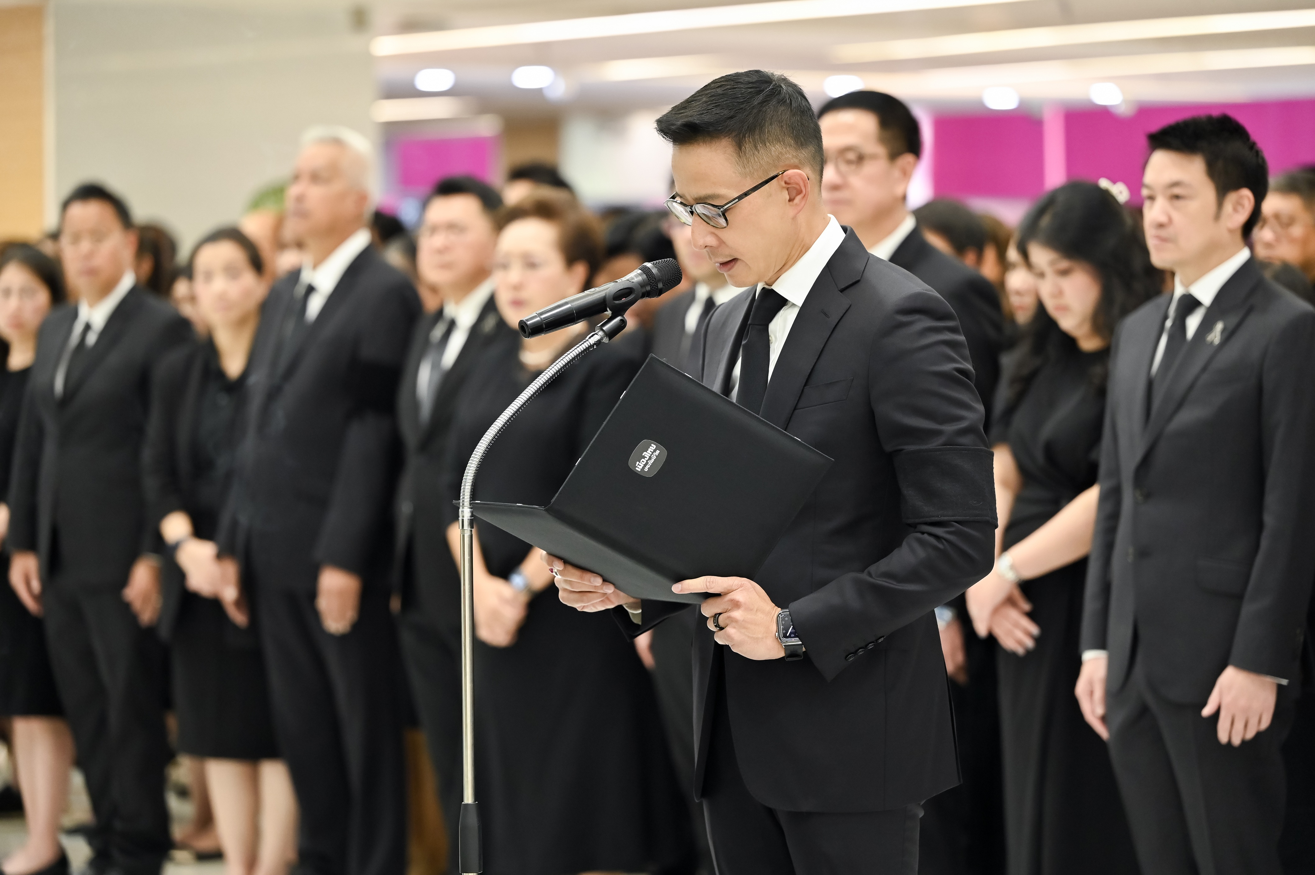 ในโอกาสนี้ นายสาระ ล่ำซำ ประธานเจ้าหน้าที่บริหาร ได้กล่าวถวายความอาลัย พร้อมกันนี้ คณะผู้บริหารและพนักงาน ได้พร้อมใจกันยืนสงบนิ่ง และลงนามในสมุดถวายความอาลัย เพื่อแสดงความจงรักภักดี และน้อมรำลึกถึงพระมหากรุณาธิคุณที่ทรงมีต่อพสกนิกรชาวไทย ตลอดระยะเวลาที่ทรงปฏิบัติพระราชกรณียกิจน้อยใหญ่นานัปการ ตามที่ทรงตั้งพระราชปณิธานอย่างแน่วแน่ ในการบำเพ็ญพระราชกรณียกิจมาตลอดพระชนม์ชีพ เพื่อบำบัดทุกข์บำรุงสุข แก่พสกนิกรชาวไทยในทุกหนแห่ง อีกทั้งยังทรงส่งเสริมงานด้านศิลปวัฒนธรรม หัตถศิลป์ไทย ตลอดจนการอนุรักษ์ธรรมชาติและสิ่งแวดล้อม รวมทั้งการพัฒนาคุณภาพชีวิตของประชาชนในถิ่นทุรกันดาร ซึ่งสะท้อนถึงพระเมตตาของสมเด็จพระนางเจ้าสิริกิติ์ พระบรมราชินีนาถ พระบรมราชชนนีพันปีหลวง สมดังพระราชสมัญญา “พระแม่ของแผ่นดิน”
