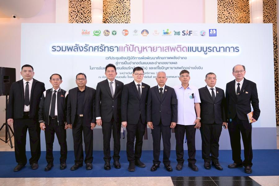 “การจัดเวทีนี้ จึงเป็นการพัฒนาศักยภาพเพื่อปลุก ‘พลังอำเภอ’ ให้ขับเคลื่อนไปสู่การแก้ปัญหายาเสพติด และกลายเป็นอำเภอต้นแบบและอำเภอขยายผลผ่านแนวทางชุมชนล้อมรักษ์ (CBTx) ที่เน้นการใช้พลังของชุมชนช่วยกันดูแล ให้ชุมชนมีส่วนร่วมตั้งแต่การป้องกัน การบำบัดฟื้นฟู ไปจนถึงการติดตามดูแลอย่างต่อเนื่อง โดยนำผู้ที่มีปัญหากลับมาฟื้นฟู ปรับเปลี่ยน และคืนคุณค่าความเป็นมนุษย์ให้กลับมาเป็นคนของชุมชนได้อย่างภาคภูมิ ช่วยให้สังคมมีความสงบสุขอย่างแท้จริง ทั้งนี้ ผมขอให้ทุกท่านร่วมกันใช้โอกาสนี้แลกเปลี่ยนเรียนรู้ ประสานความร่วมมือ และสร้างรูปธรรมที่ชัดเจนเพื่อนำไปสู่การปฏิบัติเพื่อแก้ไขปัญหายาเสพติดอย่างแท้จริง” รองนายกฯ กล่าว