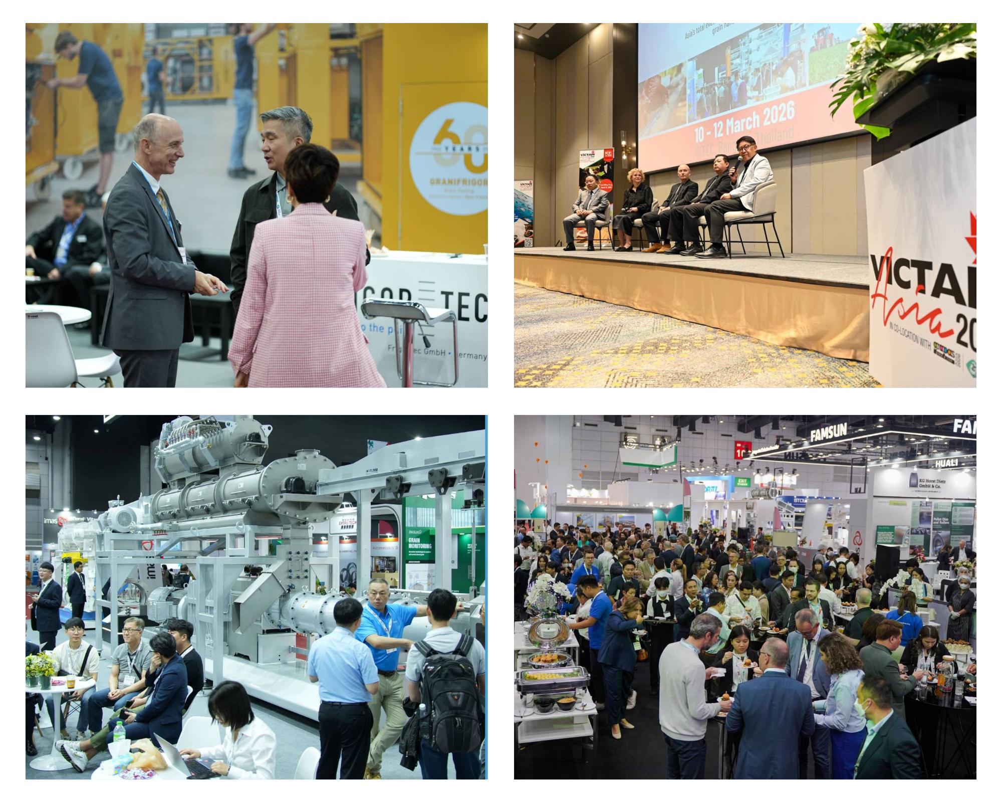 งาน VICTAM Asia 2026 ในปีนี้ มุ่งนำเสนอนวัตกรรมในกระบวนการผลิตอาหารสัตว์ ตั้งแต่สัตว์เศรษฐกิจ สัตว์ปีก สัตว์น้ำ และสัตว์เลี้ยง นวัตกรรมในการโม่แป้ง การสีข้าว พร้อมเทคโนโลยีและโซลูชันล้ำสมัยที่ครอบคลุมตั้งแต่สารเติมแต่งและวัตถุดิบ เครื่องจักรการผลิต ระบบอัตโนมัติ โปรแกรมการผลิต ส่วนผสมเพื่อสุขภาพ การวิเคราะห์ข้อมูล และการควบคุมคุณภาพ เพื่อส่งเสริมการพัฒนานวัตกรรมเพื่อยกระดับประสิทธิภาพ ความยั่งยืน และขีดความสามารถทางการแข่งขันในตลาดเอเชียที่เติบโตอย่างต่อเนื่อง