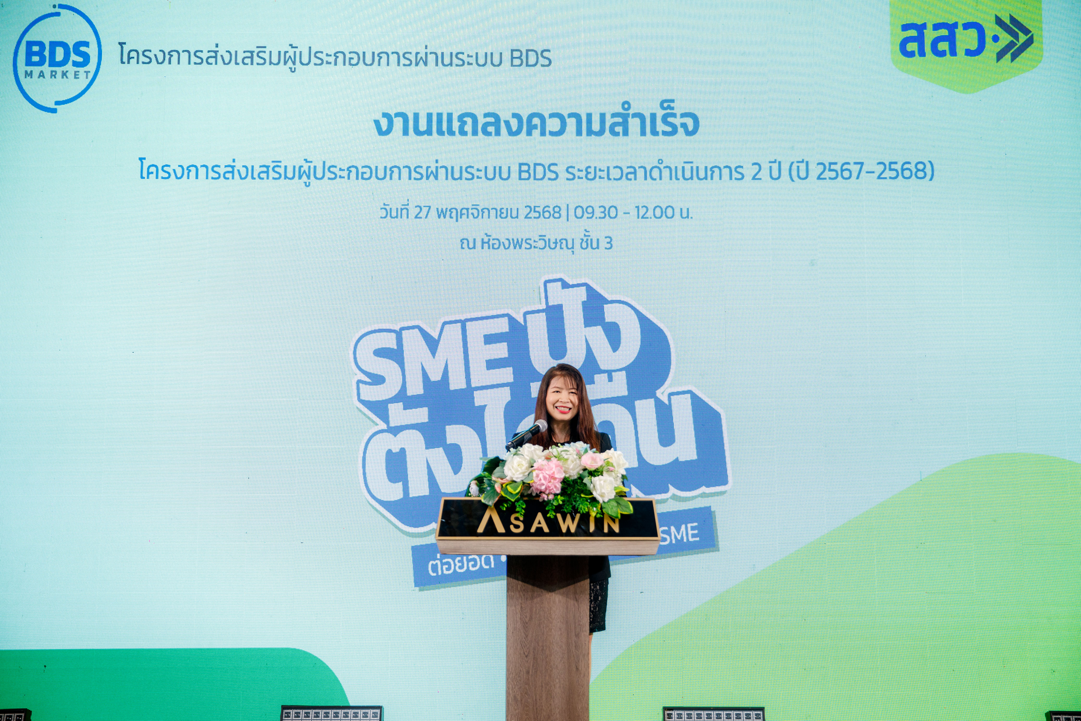 นายวิทวัส ล่ำซำ ผู้ช่วยผู้อำนวยการ สำนักงานส่งเสริมวิสาหกิจขนาดกลางและขนาดย่อม เผยว่า “ระบบ BDS ทำให้ SME ไทยเข้าถึงบริการคุณภาพได้ง่ายขึ้น ต้นทุนลดลง และยังสามารถสร้างโอกาสทางธุรกิจเพิ่มขึ้นอย่างชัดเจน ซึ่งโครงการดังกล่าวได้ดำเนินงานต่อเนื่องตั้งแต่ปี 2565–2568 โดยมีผู้ประกอบการขึ้นทะเบียนรวมกว่า 30000 ราย และยืนยันตัวตนบนระบบ BDS แล้วกว่า 9100 ราย แสดงให้เห็นถึงความต้องการใช้บริการพัฒนาธุรกิจที่เพิ่มสูงขึ้นของ SME ไทย ขณะเดียวกัน สสว. ยังสนับสนุนงบประมาณรวมมากกว่า 260 ล้านบาท เพื่อช่วยผู้ประกอบการลดต้นทุนการปรับปรุงธุรกิจในหลากหลายด้าน อาทิ มาตรฐานสินค้า การเพิ่มประสิทธิภาพด้านการผลิต การพัฒนาเทคโนโลยี การขยายโอกาสทางการตลาด และช่องทางการจัดจำหน่าย”