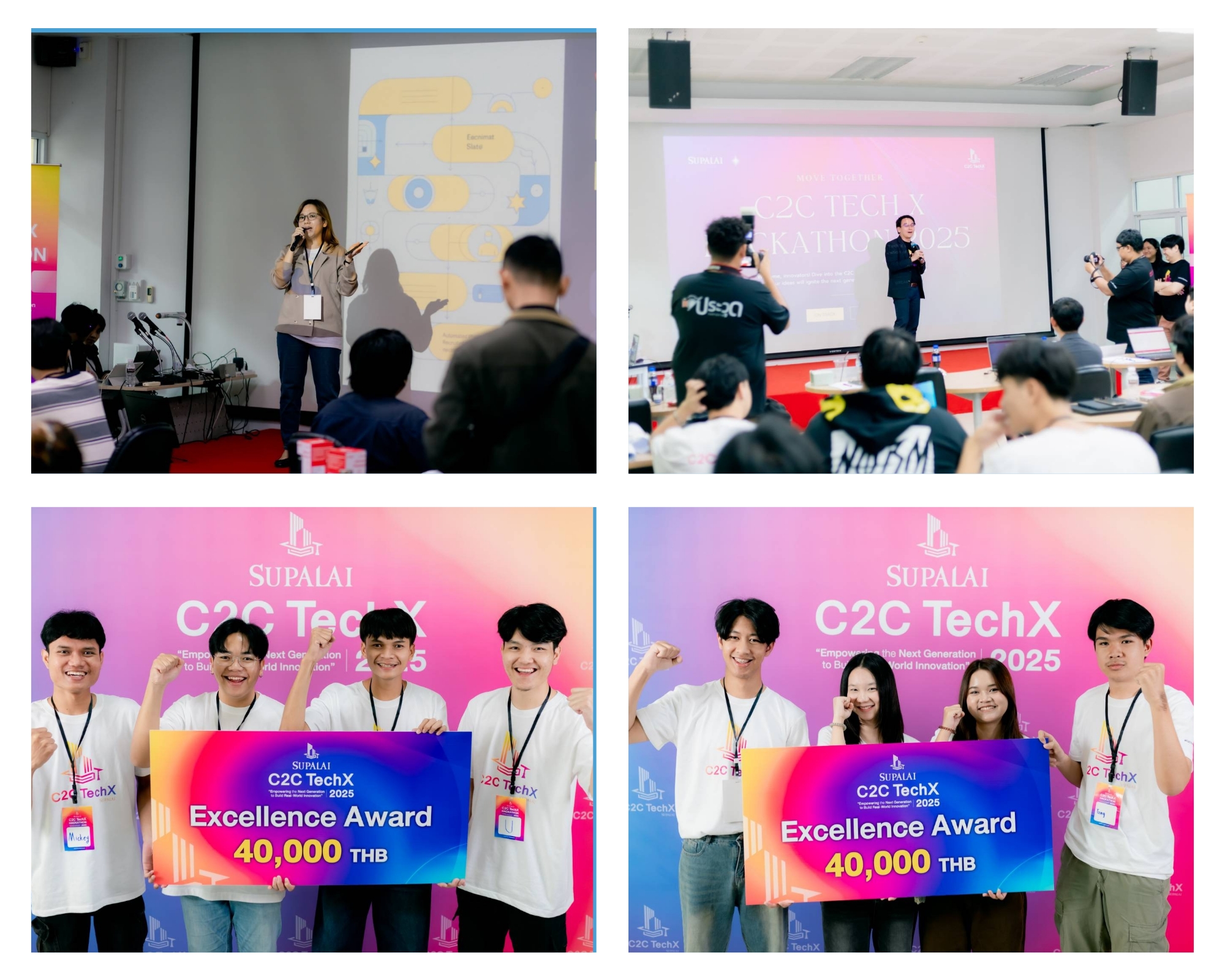 Hackathon ครั้งนี้ ไม่ใช่ “จุดจบ” แต่คือ “จุดเริ่มต้น” ของการพัฒนานวัตกรรม และเป็นด่านแรกที่สำคัญของโครงการ ภายใต้สโลแกน “Empowering the Next Generation to Build Real-World Innovation” โดยปีนี้มี 2 ผลงานที่โดดเด่นได้รับรางวัล Excellence Award ทีมละ 40000 บาท พร้อมสิทธิ์ก้าวสู่เฟสถัดไปของโครงการ ได้แก่ผลงาน Fast Track ระบบติดตามผู้สมัครงานที่ใช้ AI ดึงเรซูเม่อัตโนมัติ ทำแบบทดสอบผ่านวิดีโอได้ตลอดเวลา และช่วยนัดสัมภาษณ์อัตโนมัติ เพื่อเพิ่มประสิทธิภาพกระบวนการสรรหา และผลงาน Pre-Screen Behavior Detect เครื่องมือ AI วิเคราะห์พฤติกรรมผู้สมัครจากสายตา น้ำเสียง และคำตอบ รวมถึงคำถามพื้นฐานและคำถามเชิงจิตวิทยา เพื่อช่วย HR ประเมินผู้สมัครได้แม่นยำมากขึ้น