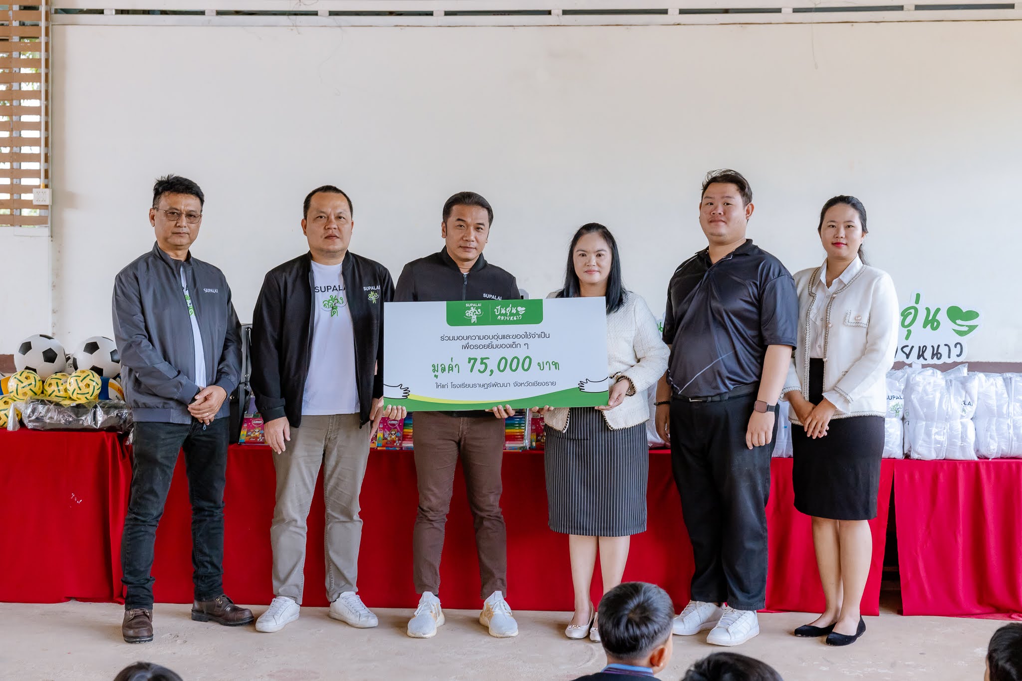 บมจ.ศุภาลัย ต่อยอดกิจกรรมเพื่อสังคมภายใต้โครงการ “ศุภาลัย สร้างดี” จัดกิจกรรม “ปันอุ่นคลายหนาว” ปีที่ 4 ส่งทีม CSR ภาคเหนือ ลงพื้นที่ช่วยเหลือโรงเรียนที่ขาดแคลนบนดอย มอบเสื้อกันหนาว “สร้างดี” อุปกรณ์การเรียน กีฬา และชุดปฐมพยาบาล พร้อมจัดเลี้ยงอาหารกลางวัน รวมมูลค่ากว่า 75000 บาท ให้กับนักเรียนและบุคลากรกว่า 90 คน ณ โรงเรียนราษฎร์พัฒนา อ.แม่ฟ้าหลวง จ.เชียงราย เพื่อส่งต่อความอบอุ่นและสร้างรอยยิ้มในช่วงฤดูหนาว