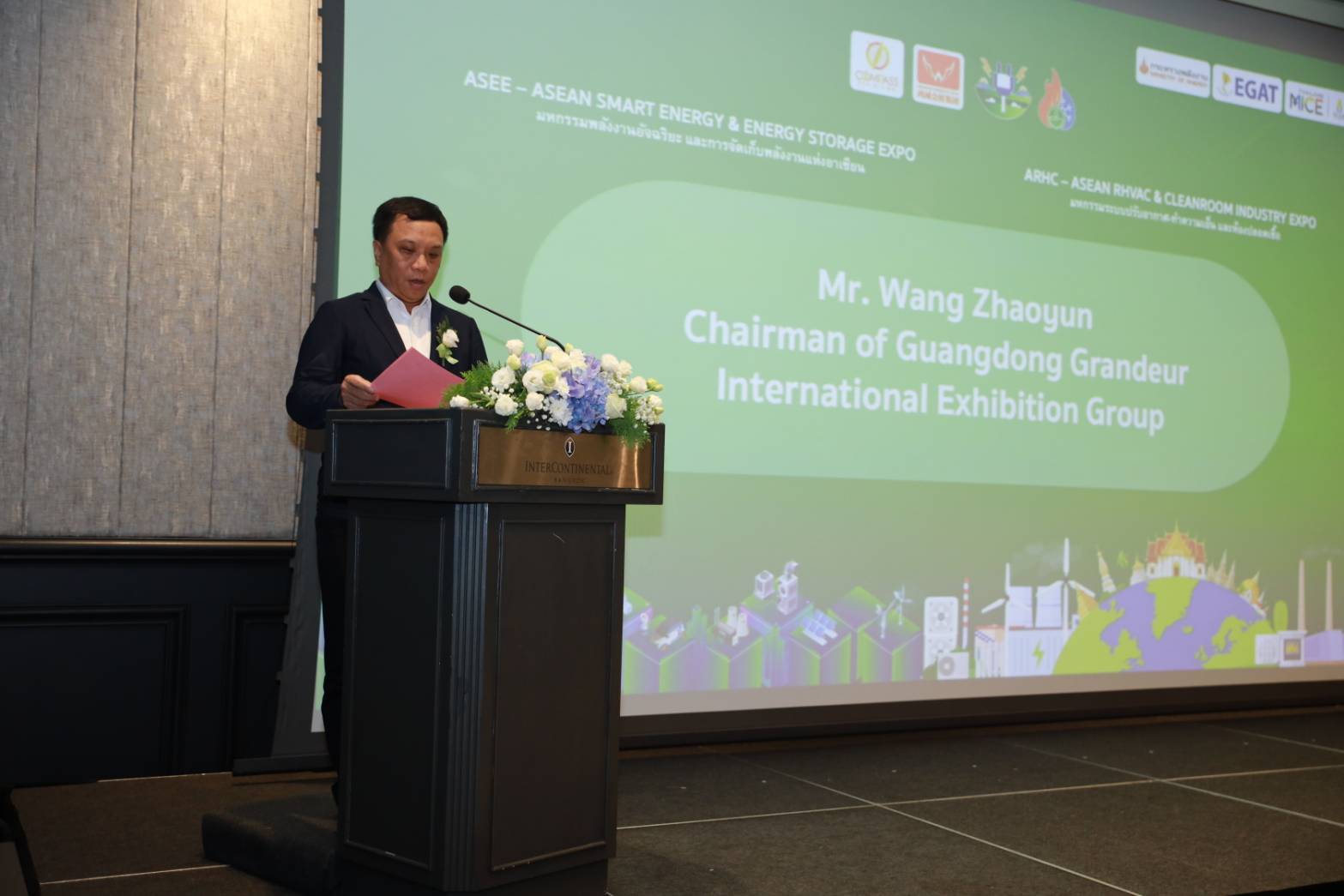 นายหวัง เจ้าหยุน ประธานบริหาร บริษัท กวางตงแกรนเดอร์เอ็กซิบิชั่น กรุ๊ป และ กรรมการบริหารสมาคมส่งเสริมการลงทุนระหว่างประเทศแห่งประเทศจีน กล่าวว่า ในปัจจุบันกระบวนการเปลี่ยนผ่านด้านพลังงานของโลกกำลังเร่งตัวอย่างต่อเนื่อง การปฏิวัติพลังงานที่ยึด ความสะอาด ความอัจฉริยะ และประสิทธิภาพสูง เป็นแกนหลัก กำลังปรับโฉมโครงสร้างอุตสาหกรรมอย่างลึกซึ้ง ภูมิภาคอาเซียน ซึ่งเป็นหนึ่งในพื้นที่ที่มีการเติบโตทางเศรษฐกิจที่สูง ยังคงมีความต้องการใช้พลังงานเพิ่มขึ้นอย่างต่อเนื่อง ขณะเดียวกัน การเปลี่ยนผ่านสู่โครงสร้างพลังงานสีเขียวก็มีความจำเป็นเร่งด่วนตามรายงานของ องค์การพลังงานระหว่างประเทศ (IEA) และศูนย์พลังงานอาเซียน คาดการณ์ว่า ภายในปี ค.ศ. 2040 ความต้องการพลังงานของภูมิภาคอาเซียนจะเพิ่มขึ้นประมาณ ร้อยละ 60 โดยการขยายการใช้พลังงานหมุนเวียนจำเป็นต้องเร่งให้รวดเร็วยิ่งขึ้น