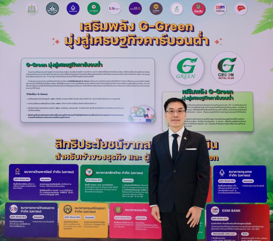 G – Green โดยให้การสนับสนุนโรงแรมที่มุ่งส่งเสริมการผลิต การบริการ และการบริโภคที่เป็นมิตรกับสิ่งแวดล้อม หรือ Green Hotel ที่ได้รับการรับรองความเป็นมิตรกับสิ่งแวดล้อมภายใต้สัญลักษณ์ G – Green เพื่อส่งเสริมให้ธุรกิจโรงแรมเปลี่ยนผ่านสู่มาตรฐานคาร์บอนต่ำ ด้วยแพ็กเกจ Green HOTEL SOLUTION เพื่อสนับสนุนการเปลี่ยนผ่าน 4 ด้าน ได้แก่