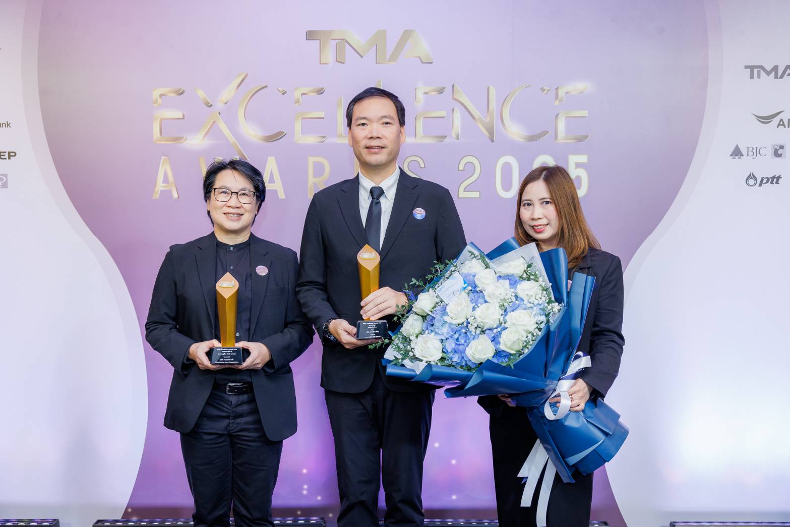 นางสาวรุ่งรวี เวทศักดิ์ ผู้อำนวยการฝ่าย ผู้บริหารสำนักงานธุรกิจเชียงใหม่ (BCM-L) ธนาคารกรุงไทย ร่วมแสดงความยินดีกับ นายธีรเชษฐ์ นันท์ศุภวัฒน์ ประธานเจ้าหน้าที่บริหาร บริษัท ลานนาคอม จำกัด ในโอกาสได้รับรางวัล SMEs Excellence Awards ระดับ Gold ประเภทธุรกิจบริการ จากเวที “TMA Excellence Awards 2025” จัดโดยสมาคมการจัดการธุรกิจแห่งประเทศไทย (TMA) ร่วมกับสถาบันบัณฑิตบริหารธุรกิจศศินทร์แห่งจุฬาลงกรณ์มหาวิทยาลัย ณ โรงแรม วอลดอร์ฟ แอสโทเรีย กรุงเทพ