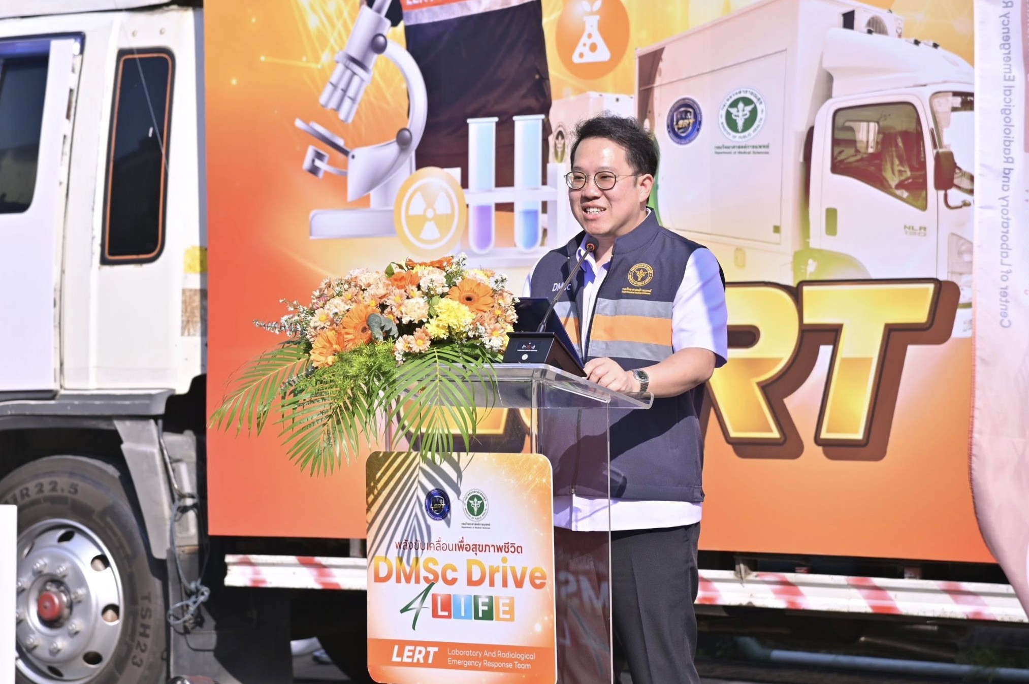 นายพัฒนา พร้อมพัฒน์ รัฐมนตรีว่าการกระทรวงสาธารณสุข กล่าวว่า ภัยคุกคามทางสุขภาพในปัจจุบันไม่ได้มีเพียงโรคภัยไข้เจ็บทั่วไปแต่ยังมีภัยพิบัติทางธรรมชาติภัยจากสารเคมี ชีวภาพ รังสี และนิวเคลียร์ หรือ CBRN กรมวิทยาศาสตร์การแพทย์ ได้ตระหนักถึงความสำคัญของการรับมือภาวะฉุกเฉินเหล่านี้ จึงได้จัดตั้ง ศูนย์ตอบโต้เหตุฉุกเฉินด้านห้องปฏิบัติการและรังสี หรือศูนย์ LERT ซึ่งจะช่วยให้สามารถรับมือกับภัยคุกคามดังกล่าว เป็นการดำเนินงานที่สอดคล้องกับยุทธศาสตร์ชาติด้านการสร้างความมั่นคงทางสุขภาพ และยุทธศาสตร์กระทรวงสาธารณสุข ด้านการส่งเสริม ให้คนไทยมีสุขภาพดีอย่างเป็นรูปธรรม หัวใจสำคัญของการรับมือภาวะฉุกเฉิน ไม่ใช่เพียงแค่การมีเครื่องมือที่ทันสมัยหรือมีห้องปฏิบัติการที่ได้มาตรฐาน แต่คือ “ความเชื่อมั่น” ของประชาชน การสื่อสารประชาสัมพันธ์ภารกิจของกรมวิทยาศาสตร์การแพทย์ในวันนี้ จึงมีความสำคัญอย่างยิ่ง ที่จะเป็นกระบอกเสียงให้สังคมได้รับรู้ว่าประเทศไทย ของเรามีทีมงานผู้เชี่ยวชาญ และรถปฏิบัติการเคลื่อนที่ (Mobile Lab) ที่พร้อมจะเข้าไปดูแลความปลอดภัยของพี่น้องประชาชนถึงพื้นที่เกิดเหตุ
