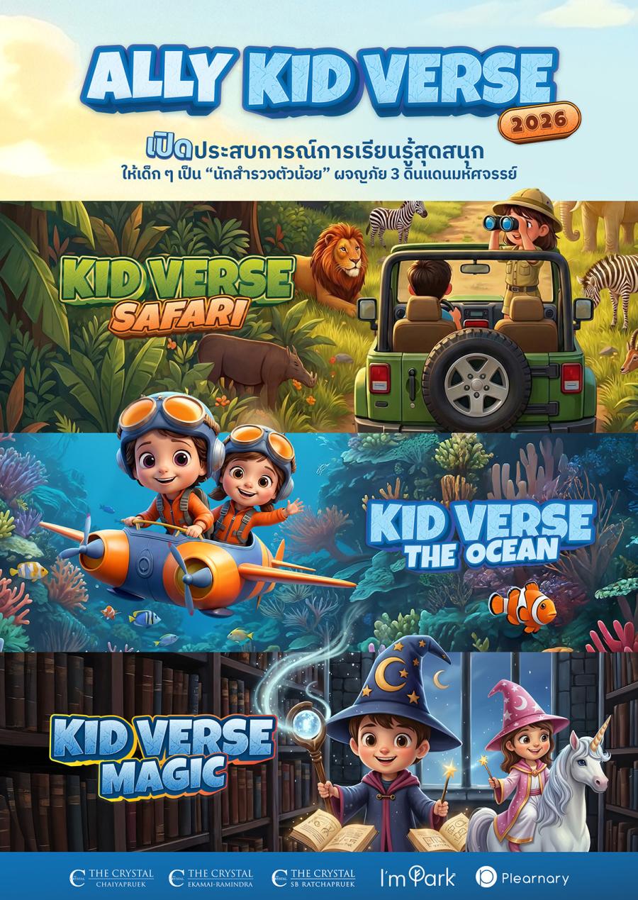 งาน ALLY KIDVERSE 2026 จัดขึ้นตั้งแต่วันนี้-11 มกราคม 2569 ณ ศูนย์การค้าเดอะคริสตัล เอกมัย–รามอินทรา เดอะคริสตัล ชัยพฤกษ์ เดอะคริสตัล เอสบี ราชพฤกษ์ และศูนย์การค้าเพลินนารี่ และในวันที่ 10-11 มกราคม 2569 ณ ศูนย์การค้าแอมพาร์ค จุฬา โดยแต่ละศูนย์การค้าจัดเต็มกิจกรรมไฮไลต์ที่แตกต่างกัน เพื่อให้เด็ก ๆ และครอบครัวได้สัมผัสประสบการณ์ที่หลากหลายไม่ซ้ำกัน