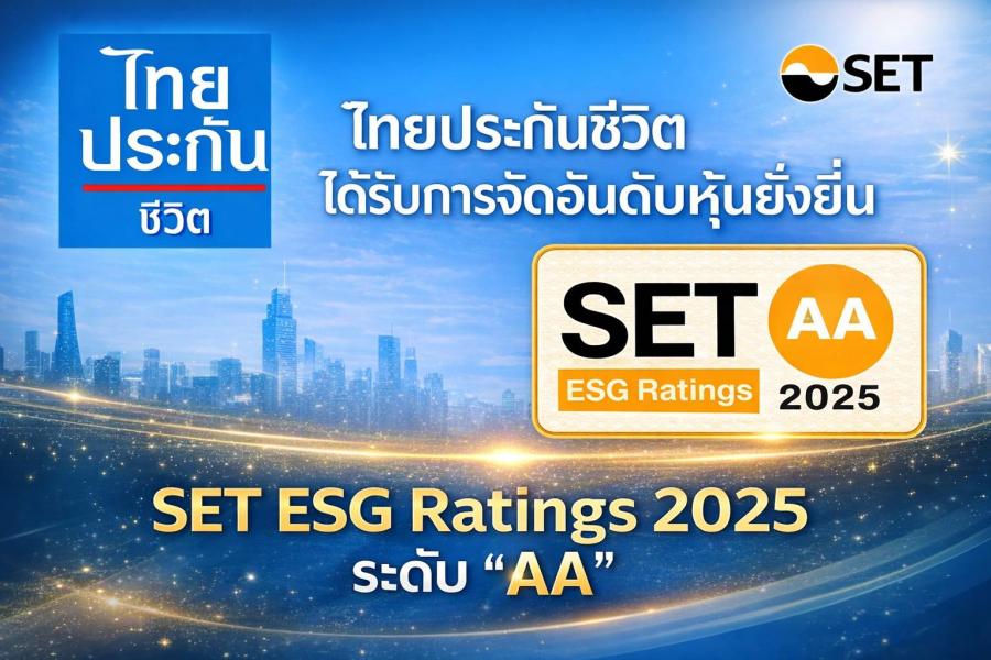 ไทยประกันชีวิต ได้รับการจัดอันดับหุ้นยั่งยืน SET ESG Ratings 2025 ระดับ “AA”