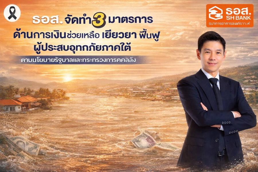 ธอส. จัดทำ 3 มาตรการด้านการเงินช่วยเหลือ เยียวยา ฟื้นฟูผู้ประสบอุทกภัยภาคใต้ ตามนโยบายรัฐบาลและกระทรวงการคลัง