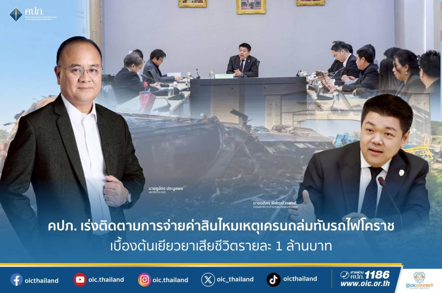 คปภ. เร่งติดตามการจ่ายค่าสินไหมเหตุเครนถล่มทับรถไฟโคราช เบื้องต้นเยียวยาเสียชีวิตรายละ 1 ล้านบาท