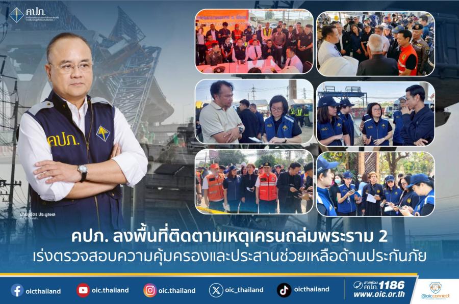 คปภ. ลงพื้นที่ติดตามเหตุเครนถล่มพระราม 2 เร่งตรวจสอบความคุ้มครองและประสานช่วยเหลือด้านประกันภัย