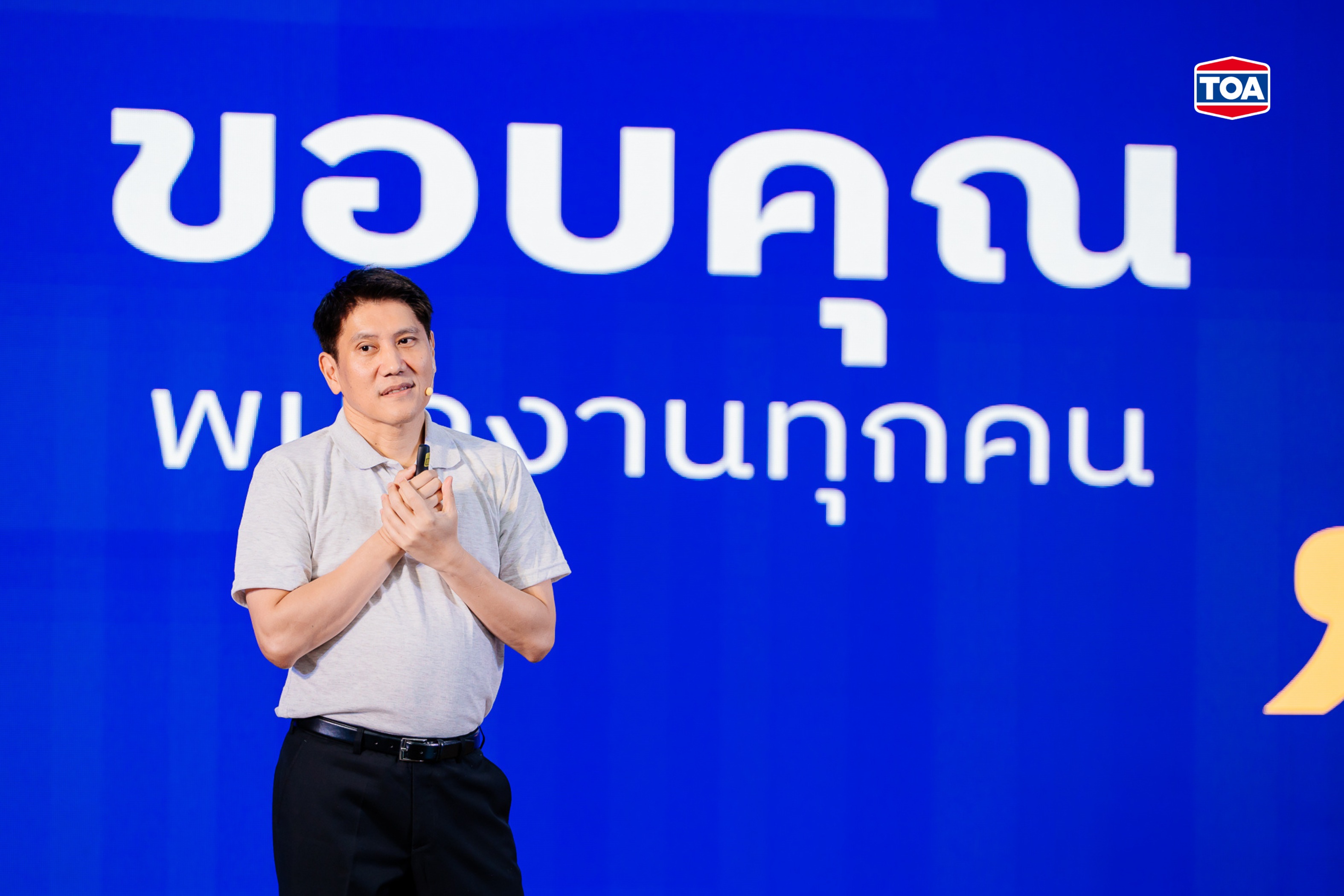 บริษัท ทีโอเอ เพ้นท์ (ประเทศไทย) จำกัด (มหาชน) หรือ TOA ตอกย้ำศักยภาพผู้นำอุตสาหกรรม สีทาอาคารอันดับ 1 ของไทยที่ครองใจผู้บริโภค พร้อมก้าวสู่ผู้นำอุตสาหกรรมตกแต่งพื้นผิวและวัสดุก่อสร้าง เปิดศักราชปี 2569 อย่างยิ่งใหญ่ในงาน ‘CEO Town Hall 2026’ ประกาศวิสัยทัศน์ใหม่ ‘แต่งเติมความสุขของการอยู่อาศัยให้ทุกคน (Inspiring Happiness in Everyday Living)’ พร้อมขับเคลื่อนองค์กรด้วย 5 กลยุทธ์เสาหลักทั้งการตั้งเป้าเติบโตของยอดขายอย่างต่อเนื่อง ควบคู่การ Upskill ให้พนักงานและองค์กรเต็มสูบ ด้วยเครื่องมือ AI พร้อมเดินหน้าพันธกิจรักษ์โลก Net Zero สู่การเป็นผู้นำ Total Solutions อย่างยั่งยืน