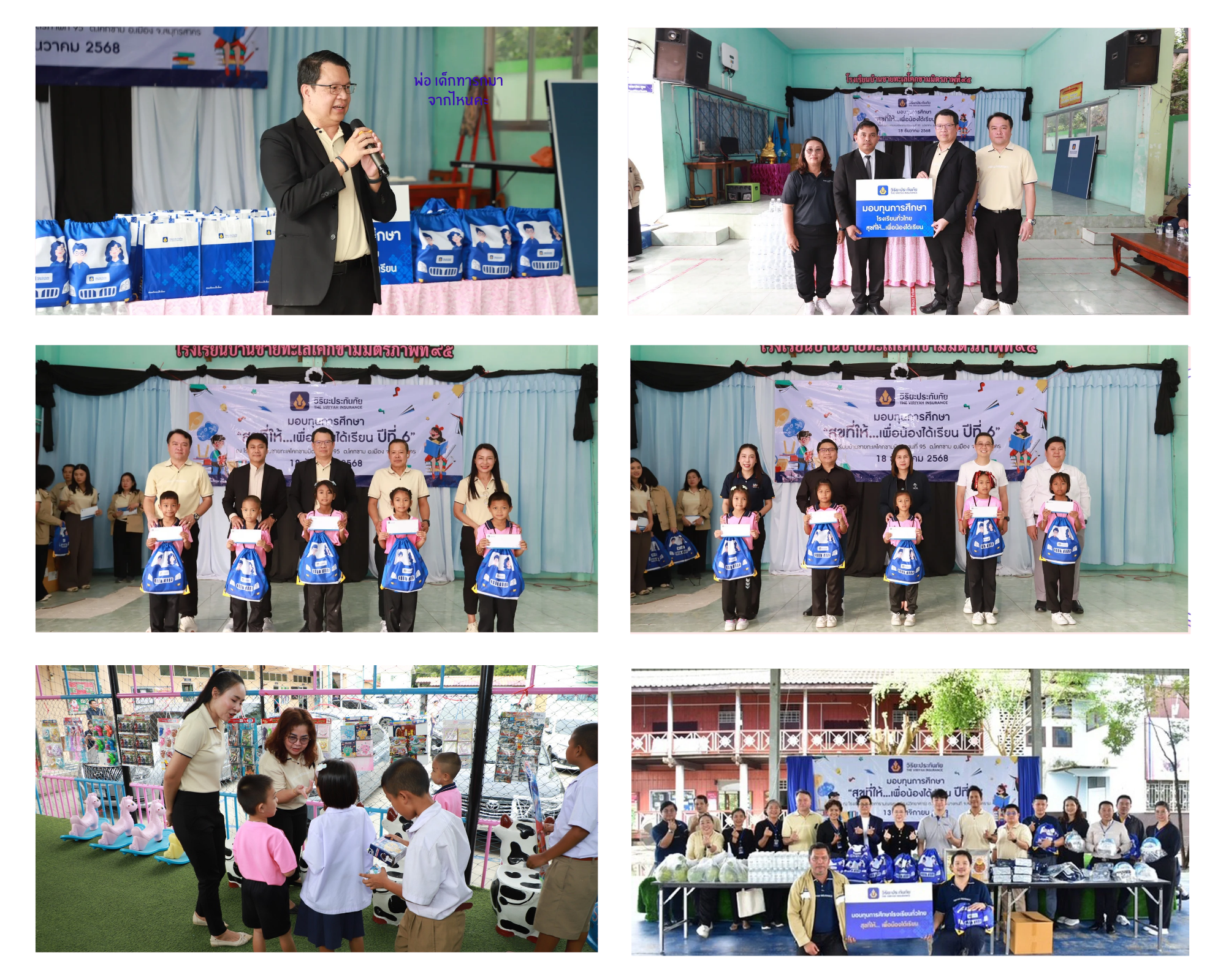 สำหรับ โครงการ “สุขที่ให้...เพื่อน้องได้เรียน” ก่อตั้งขึ้นด้วยความมุ่งมั่นในการส่งเสริมโอกาสทางการศึกษาให้กับเด็กและเยาชนที่ขาดแคลน ได้พัฒนาศักยภาพการเรียนรู้ของตนเองอย่างเต็มที่และมีความสุข และพร้อมเติบโตเป็นพลเมืองที่ช่วยพัฒนาสังคมและประเทศชาติอย่างยั่งยืน ทั้งนี้ ในปี 2568 บริษัทฯ ร่วมกับตัวแทน/นายหน้าประกันวินาศภัย ศูนย์ซ่อมมาตรฐาน และพันธมิตรทางธุรกิจ ดำเนินการมอบทุนการศึกษาทั่วประเทศ รวมทั้งหมด 1891 ทุน เป็นเงินทั้งสิ้น 2446590 บาท