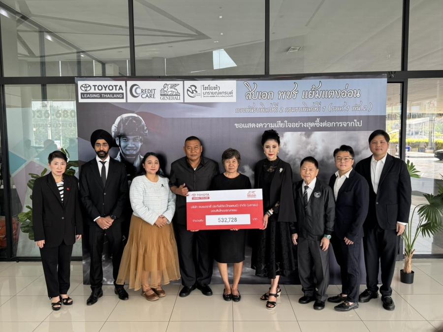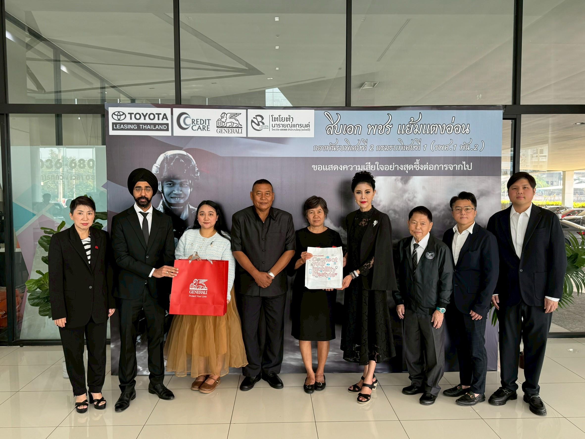 คุณอาร์ช คอลมิ ประธานเจ้าหน้าที่บริหาร กลุ่มบริษัท เจนเนอราลี่ ไทยแลนด์ และคุณยุวดี งานทวีกิจ ประธานเจ้าหน้าที่ฝ่ายธุรกิจ พร้อมด้วย คุณชื่นกมล ทัพพะรังสี กรรมการผู้จัดการใหญ่ โตโยต้า ลีสซิ่ง และ คุณอุดม ชัยชนะพานิช กรรมการผู้จัดการใหญ่ โตโยต้านารายณ์แกรนด์ ได้ร่วมกันส่งมอบสินไหมทดแทนภายใต้ความคุ้มครองประกันวงเงินสินเชื่อรถยนต์ รวมมูลค่า 532728 บาท ตามเงื่อนไขกรมธรรม์อย่างครบถ้วน เพื่อปิดภาระค่างวดรถยนต์ Toyota Yaris Ativ และมอบเงินส่วนต่างให้กับคุณแม่สุนทรี แย้มแตงอ่อน ผู้รับผลประโยชน์ตามกรมกรรม์ โดยมีคุณพ่อ ร.ท.องอาจ แย้มแตงอ่อน และภรรยาของส.อ.พชร แย้มแตงอ่อน ร่วมรับมอบสินไหม เมื่อวันที่ 16 มกราคม พ.ศ.2569 ณ โชว์รูม โตโยต้านารายณ์แกรนด์