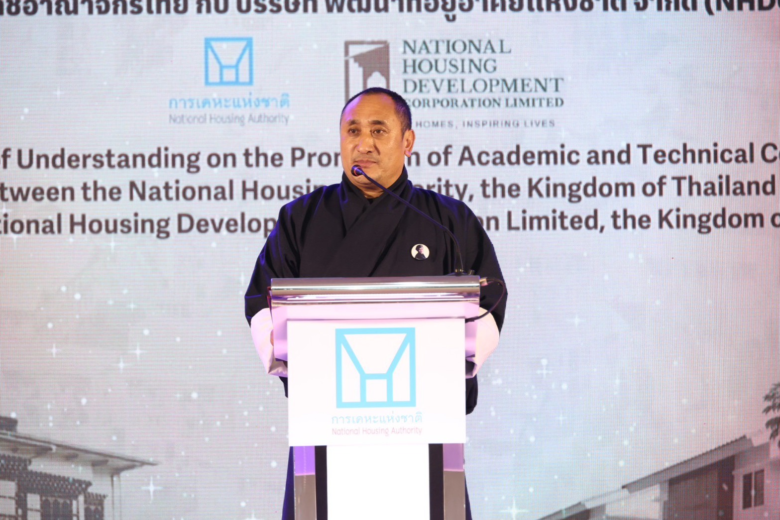 ในส่วนของ Mr. Rinchen Wangdi ประธานเจ้าหน้าที่บริหาร National Housing Development Corporation Limited (NHDCL) กล่าวว่า ความร่วมมือทางวิชาการในครั้งนี้ นับเป็นก้าวสำคัญในการเสริมสร้างศักยภาพการพัฒนาที่อยู่อาศัยอย่างยั่งยืนของทั้งสองประเทศ ซึ่งกำลังเผชิญความท้าทายจากการขยายตัวของเมือง ควบคู่กับความจำเป็นในการอนุรักษ์เอกลักษณ์ทางวัฒนธรรม และการรับมือกับผลกระทบจากการเปลี่ยนแปลงสภาพภูมิอากาศ อันต้องอาศัยองค์ความรู้ ประสบการณ์ของการเคหะแห่งชาติ และแนวปฏิบัติที่เหมาะสมร่วมกัน พร้อมต่อยอดไปสู่ความร่วมมือในระยะยาวที่ลึกซึ้งยิ่งขึ้น อันจะก่อให้เกิดประโยชน์อย่างยั่งยืนแก่ประชาชนของทั้งสองประเทศต่อไป