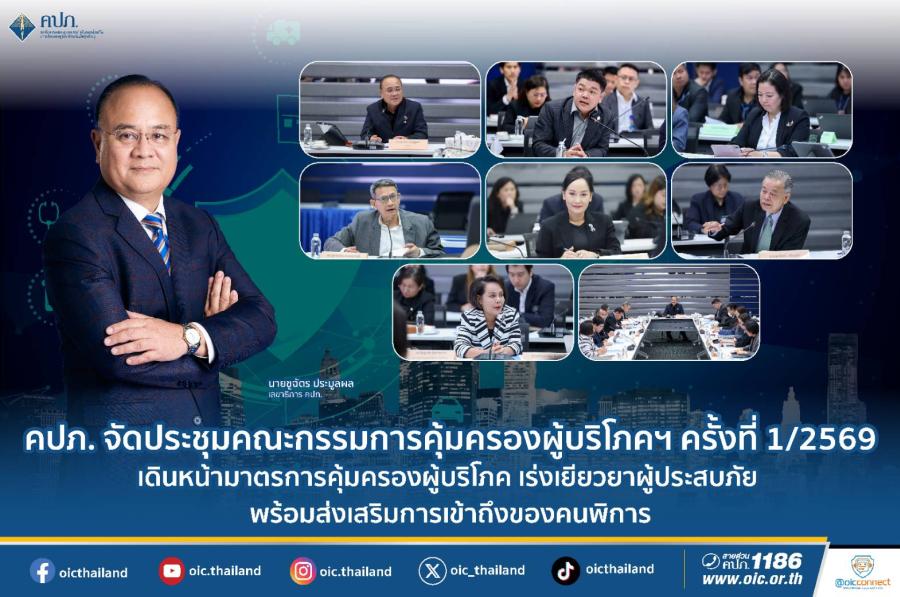 คปภ. จัดประชุมคณะกรรมการคุ้มครองผู้บริโภคฯ ครั้งที่ 1/2569 เดินหน้ามาตรการคุ้มครองผู้บริโภค เร่งเยียวยาผู้ประสบภัย พร้อมส่งเสริมการเข้าถึงของคนพิการ