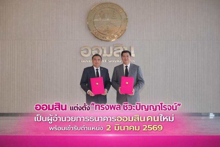 ออมสิน แต่งตั้ง “ทรงพล ชีวะปัญญาโรจน์” เป็นผู้อำนวยการธนาคารออมสินคนใหม่ พร้อมเข้ารับตำแหน่ง 2 มีนาคม 2569