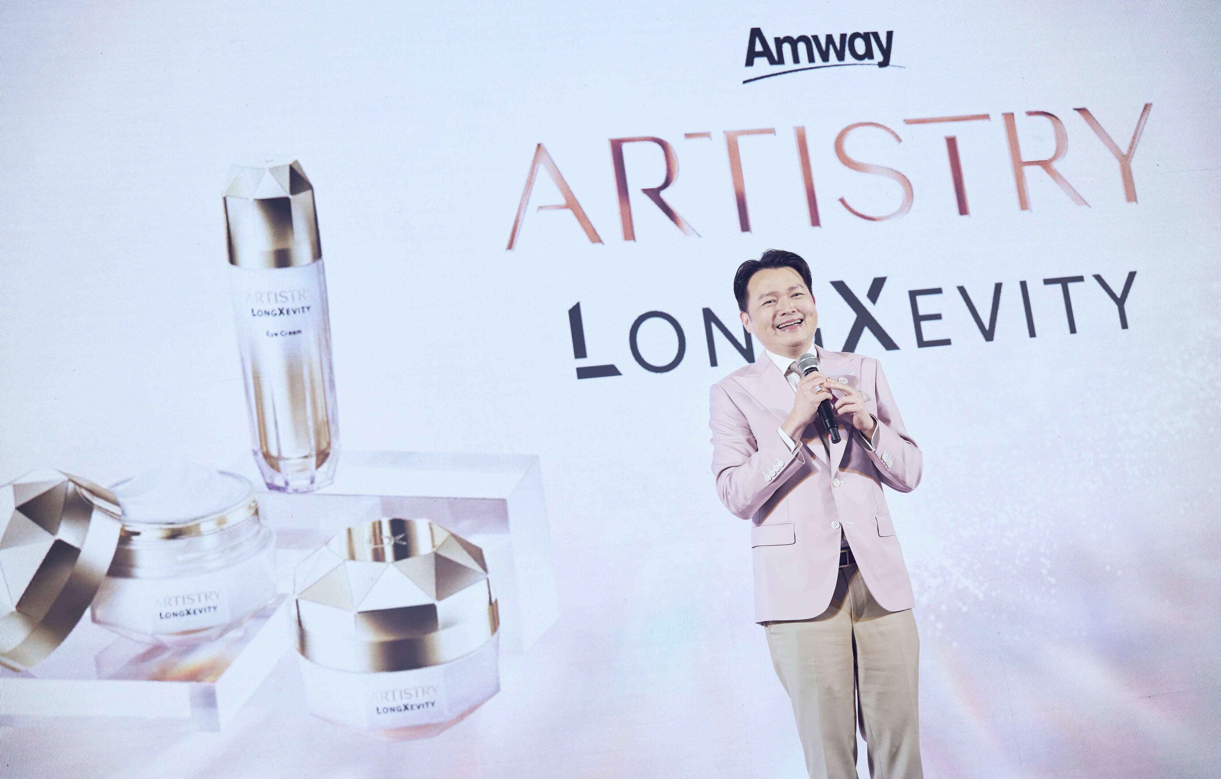 นายทศพร นิษฐานนท์ กรรมการผู้จัดการ บริษัท แอมเวย์ (ประเทศไทย) จำกัด กล่าวว่า “แอมเวย์มุ่งเน้นการพัฒนาผลิตภัณฑ์เพื่อตอบโจทย์การดูแลสุขภาพแบบองค์รวม ด้วยแนวคิด Healthspan & Longevity คือการมีชีวิตยืนยาวอย่างมีคุณภาพด้วยสุขภาพร่างกายและผิวที่ดีไปพร้อมกัน และค่ำคืนนี้เป็นการเปิดตัวผลิตภัณฑ์ใหม่ ‘อาร์ทิสทรี ลองจีวิตี้’ (Artistry LongXevity) ที่จะเข้ามาเพิ่มความเชื่อมั่นให้กับผู้บริโภค และเพิ่มโอกาสให้นักธุรกิจแอมเวย์ในการต่อยอดเพื่อพัฒนาธุรกิจอย่างมั่นคง พร้อมขับเคลื่อนองค์กรให้ก้าวสู่ความสำเร็จในฐานะแบรนด์ขายตรงอันดับ 1 ของประเทศไทย และอาร์ทิสทรี ในฐานะแบรนด์เครื่องสำอางพรีเมียมอันดับ 1 ของประเทศไทย* ผลิตภัณฑ์นี้ถือเป็นก้าวสำคัญของแอมเวย์ในการนำเสนอนวัตกรรมสกินแคร์ระดับพรีเมียม ที่มาพร้อมแนวคิด ‘Skin Longevity’ ซึ่งเรามั่นใจว่าจะสามารถตอบโจทย์การดูแลผิวให้ดูสุขภาพดีและคงความอ่อนเยาว์ในระยะยาว”