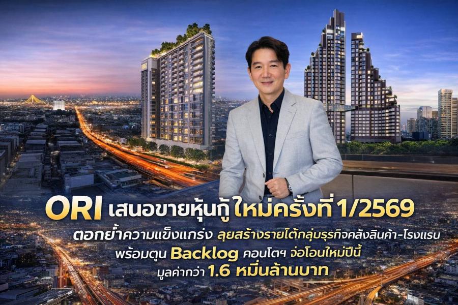 ORI เสนอขายหุ้นกู้ใหม่ครั้งที่ 1/2569 ตอกย้ำความแข็งแกร่ง ลุยสร้างรายได้กลุ่มธุรกิจคลังสินค้า-โรงแรม พร้อมตุน Backlog คอนโดฯ จ่อโอนใหม่ปีนี้ มูลค่ากว่า 1.6 หมื่นล้านบาท
