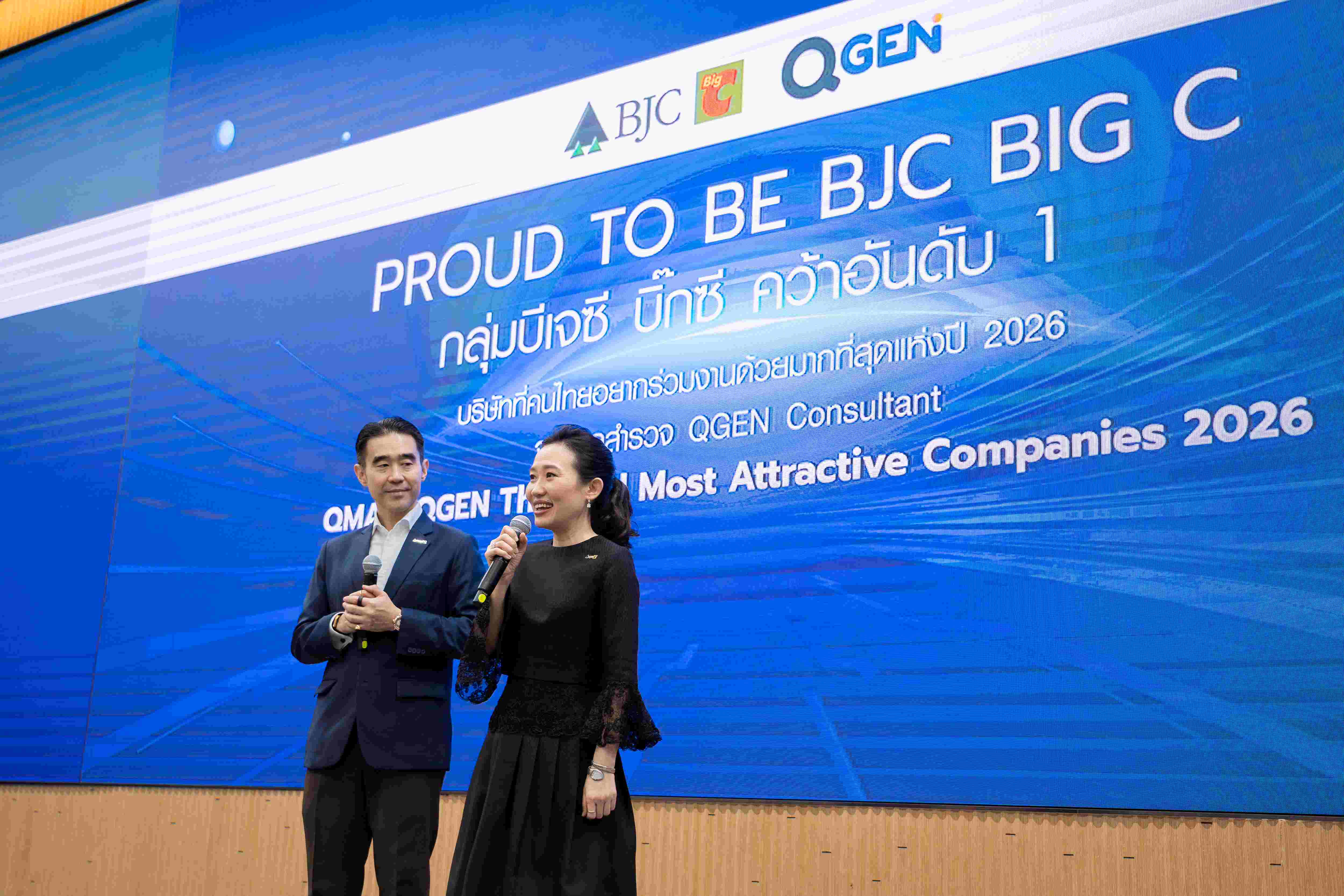 กลุ่มบีเจซี บิ๊กซี สร้างปรากฏการณ์ครั้งสำคัญในตลาดแรงงานไทย หลังได้รับการจัดอันดับให้ครอง อันดับ 1 จาก 55 บริษัท ที่คนไทยอยากร่วมงานด้วยมากที่สุด ประจำปี 2569 จากเวที “QMAC: QGEN Thailand Most Attractive Companies 2026” โดย QGEN Consultant บริษัท ที่ปรึกษาด้าน People & Organization ชั้นนำของประเทศไทย ผู้เชี่ยวชาญด้านกลยุทธ์บุคลากร การสำรวจ Employee Experience และการวิเคราะห์ภาพลักษณ์นายจ้าง (Employer Branding) ที่ได้รับความเชื่อถือจากองค์กรชั้นนำทั่วประเทศ
