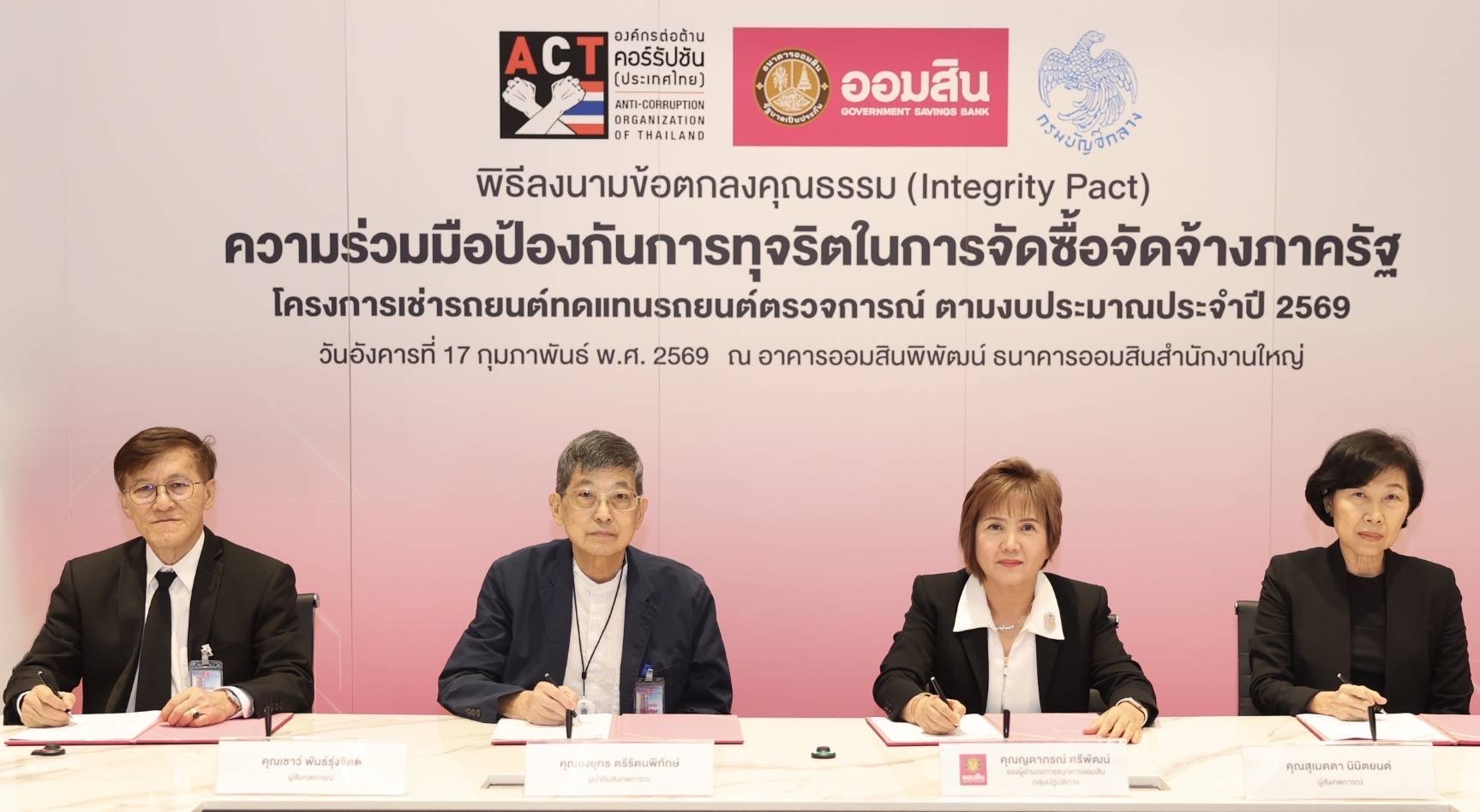 ออมสิน ลงนามข้อตกลงคุณธรรม โครงการเช่ารถยนต์ทดแทนชุดเดิม ยกระดับความโปร่งใสจัดซื้อจัดจ้างภาครัฐ