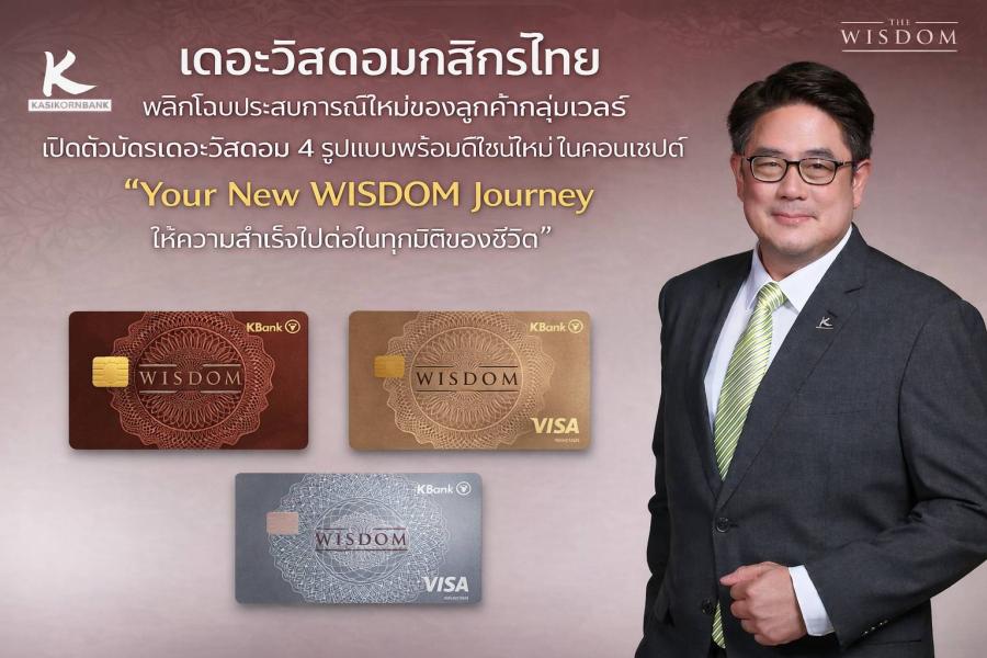 ธนาคารกสิกรไทย พลิกโฉม “เดอะวิสดอม (THE WISDOM)” สู่ประสบการณ์ใหม่สำหรับลูกค้ากลุ่มเวลธ์ ยกระดับสู่การเป็นพาร์ตเนอร์ระยะยาวที่เติบโตไปกับความสำเร็จของลูกค้า ในคอนเซปต์ “Your New WISDOM Journey ให้ความสำเร็จไปต่อในทุกมิติของชีวิต” เปิดตัวบัตรใหม่ที่มีดีไซน์เฉพาะตัวตามระดับ สินทรัพย์ สะท้อนเอกลักษณ์ความมั่งคั่งที่เรียบหรูและมีพลัง พร้อมสิทธิพิเศษที่ออกแบบมาเพื่อตอบโจทย์ เฉพาะบุคคลอย่างลึกซึ้ง