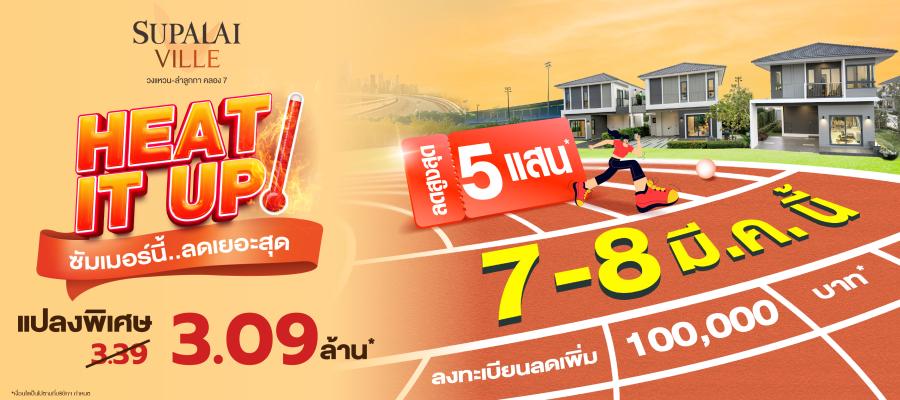 HEAT IT UP ซัมเมอร์นี้ ลดเยอะสุด! บ้านเดี่ยว–บ้านแฝด พร้อมอยู่ แปลงพิเศษเริ่ม 3.09 ล้านบาท* ที่ศุภาลัย วิลล์ วงแหวน–ลำลูกกา คลอง 7 พิเศษเฉพาะ 7–8 มีนาคมนี้